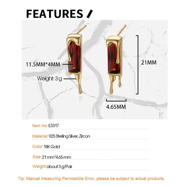 Be the first to review “F.I.N.S 925 Sterling Silver Lava Red Cubic Zirconia Earrings Retro Style Geometric Square Piercing Ear”
