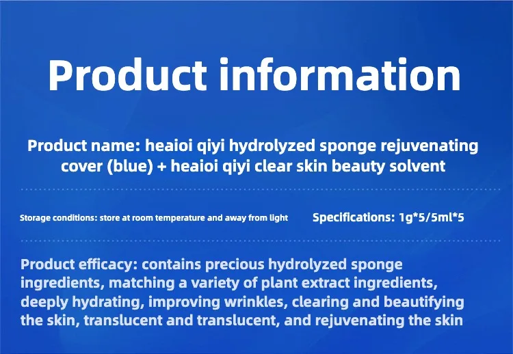 Product Effect: Containing precious hydrolyzed sponge ingredients with multiple plant extracts, deep hydration, improve facial skin problems, clear skin, beautiful skin, glistening and translucent beautiful, glowing skin