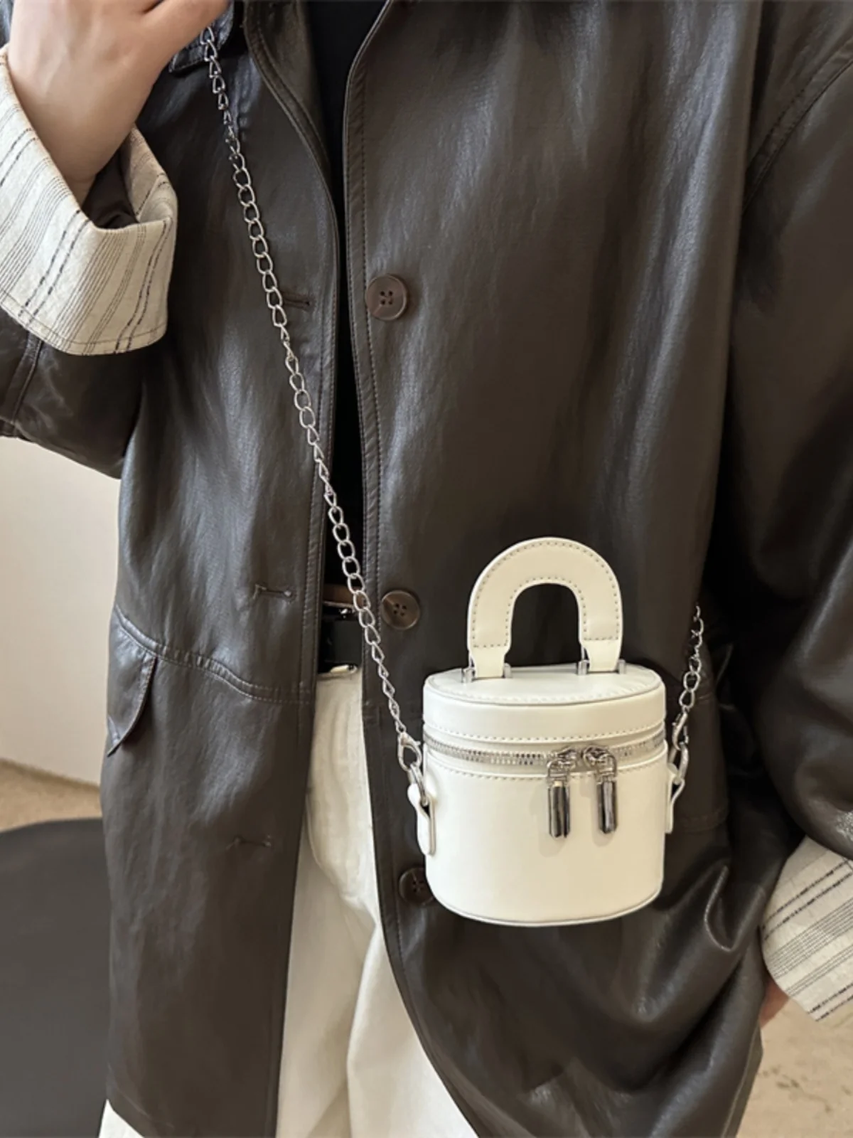 Stay ahead of the curve with this 2024 fashion-forward mini bucket bag, perfect for the style-savvy individual.