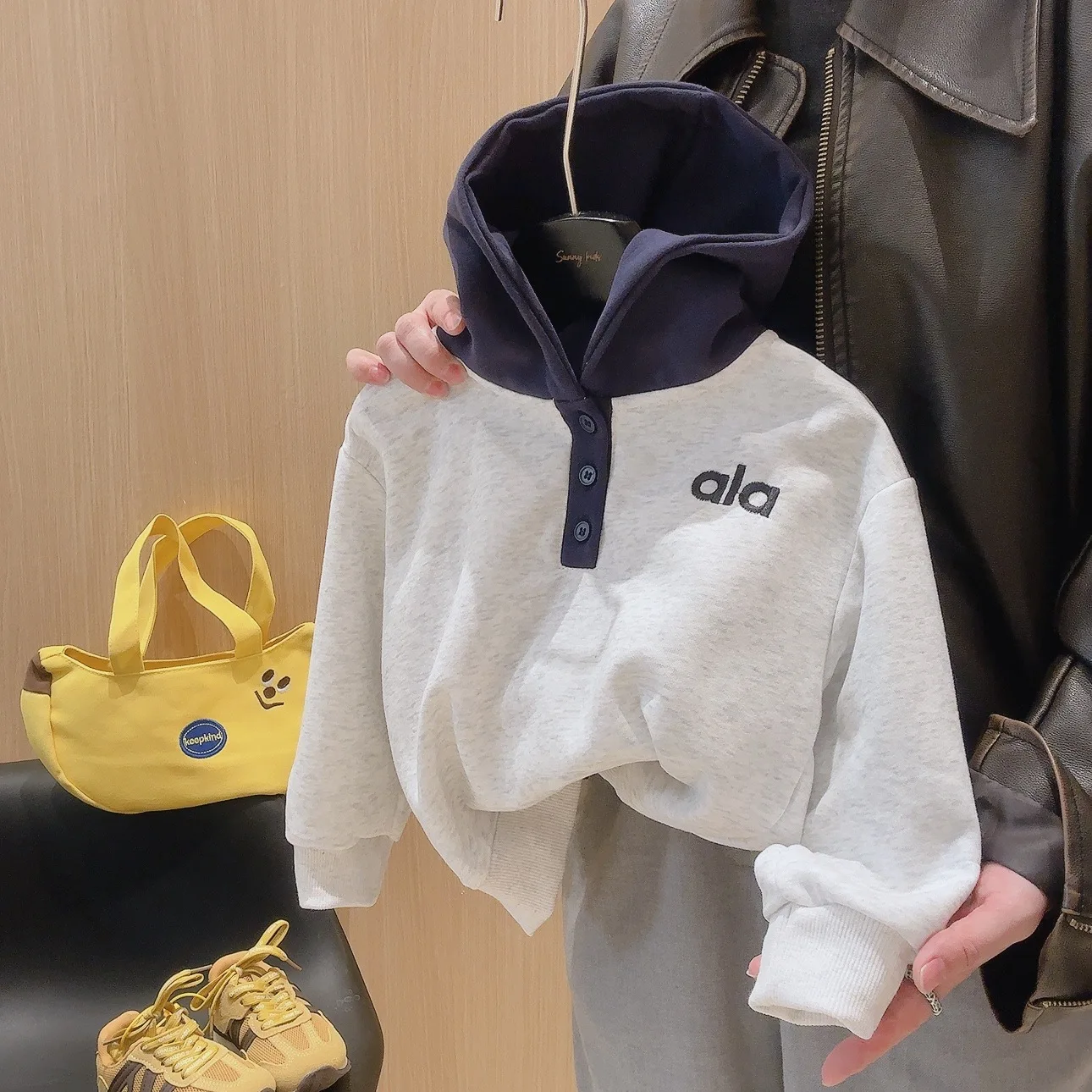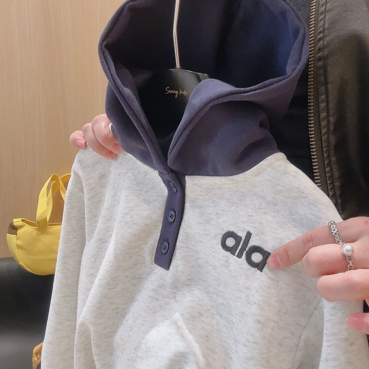 Faionable Color Blo Hoodie Set Korean Sle Casual Loose Fit Boys Clothing Autumn Winter Warm Thi Cotton Blend Kids Outfit