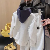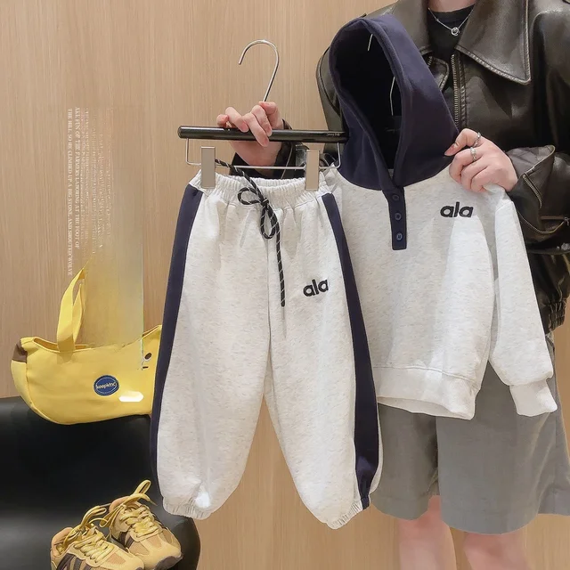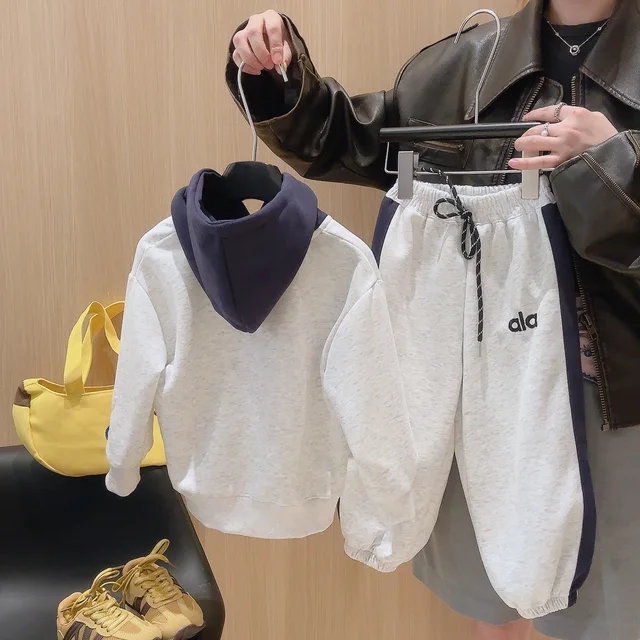 Faionable Color Blo Hoodie Set Korean Sle Casual Loose Fit Boys Clothing Autumn Winter Warm Thi Cotton Blend Kids Outfit