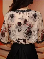 This T-shirt features a trendy red rose print, adding a touch of elegance and style to your summer wardrobe.