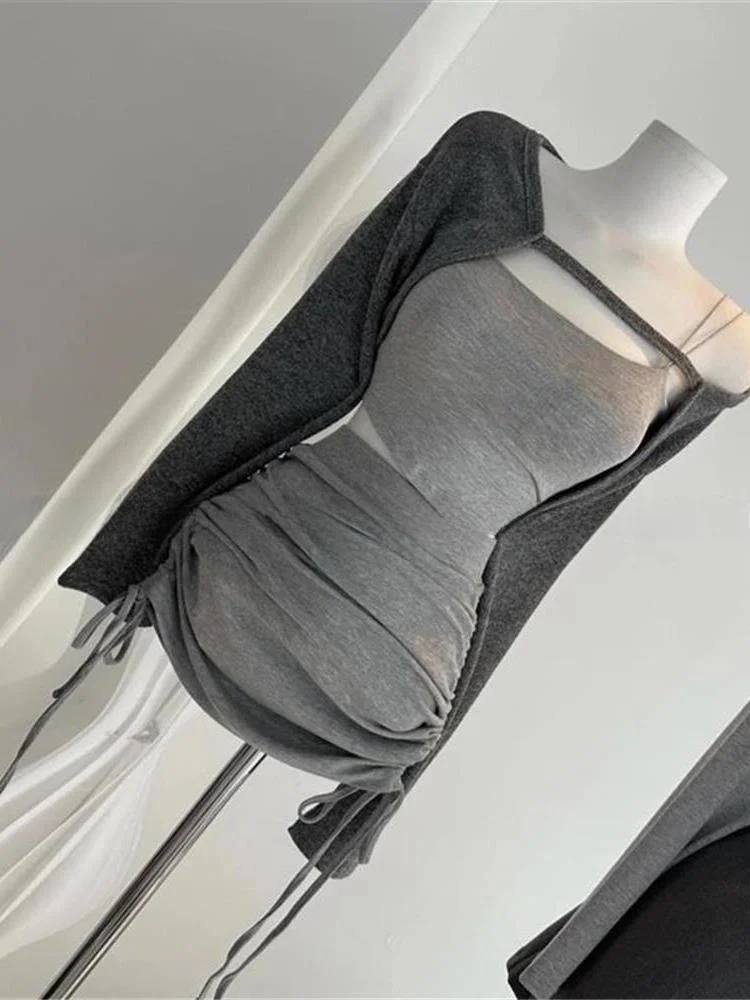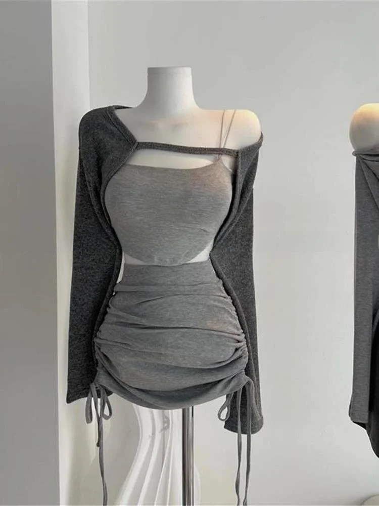 Drawstring skirt [single piece]Gray sling [single piece]Sun protection blouse [single piece]Three-piece set