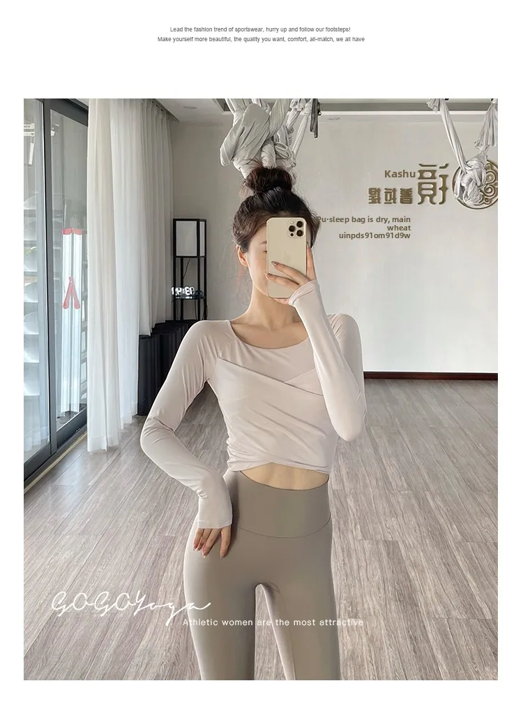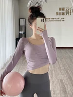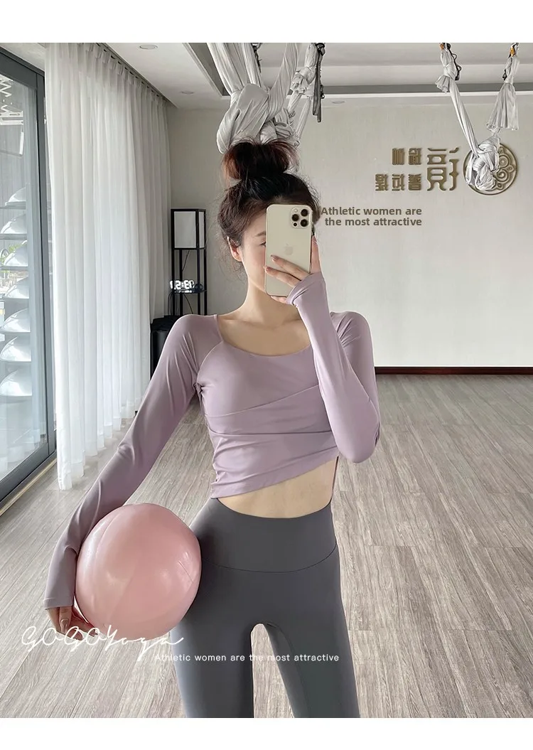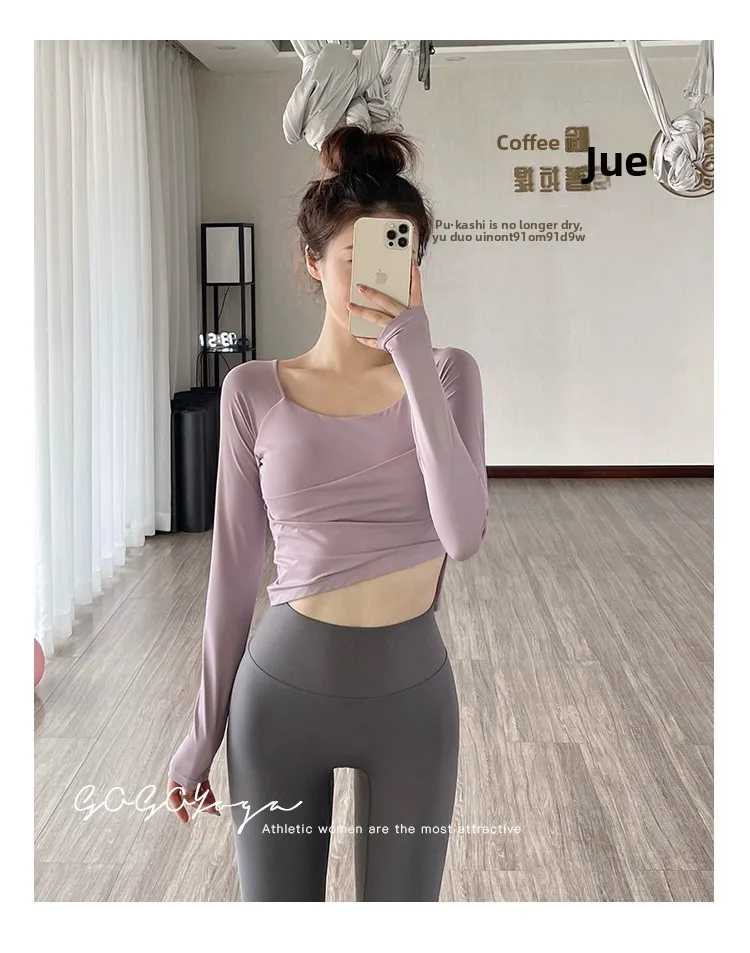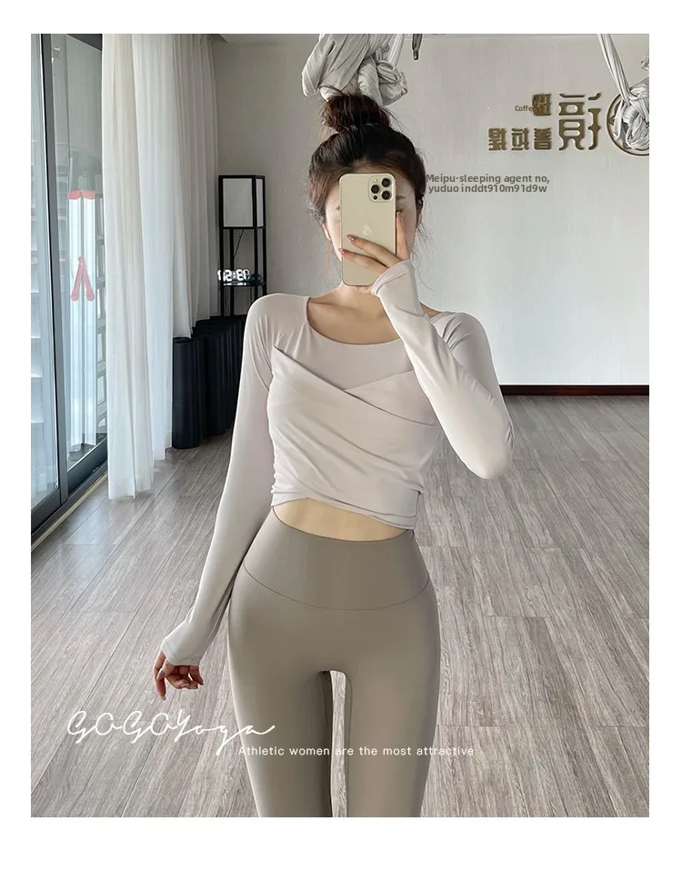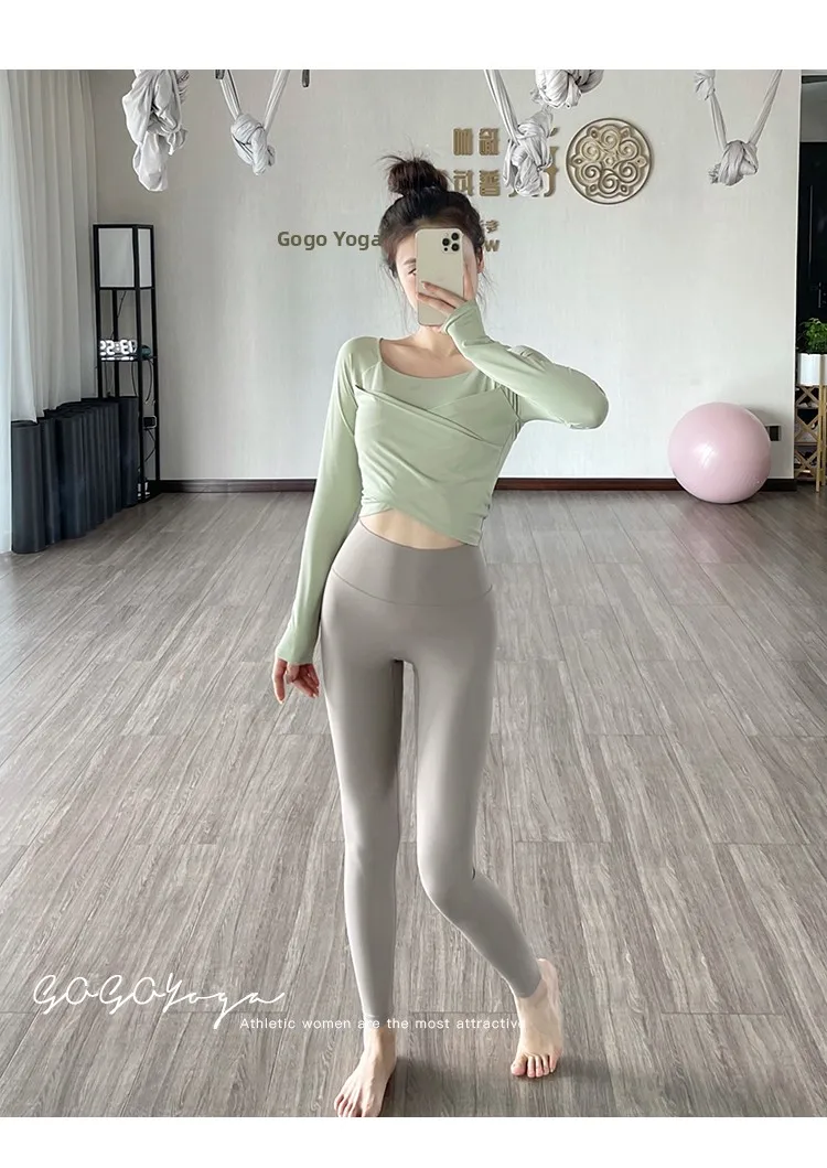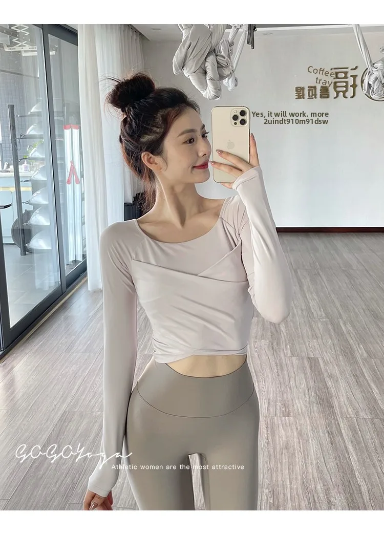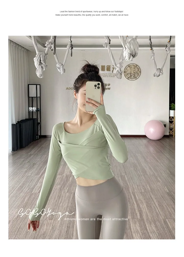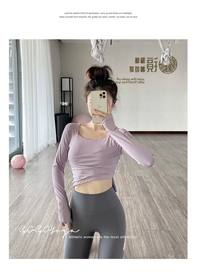 The new autumn sports yoga clothing features a simple square neckline and regular sleeves, offering a versatile look suitable for various occasions.