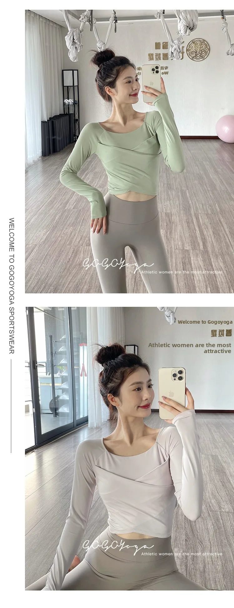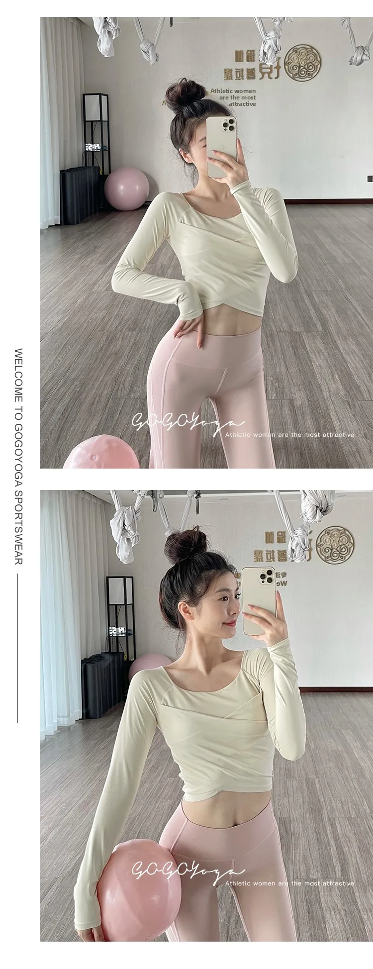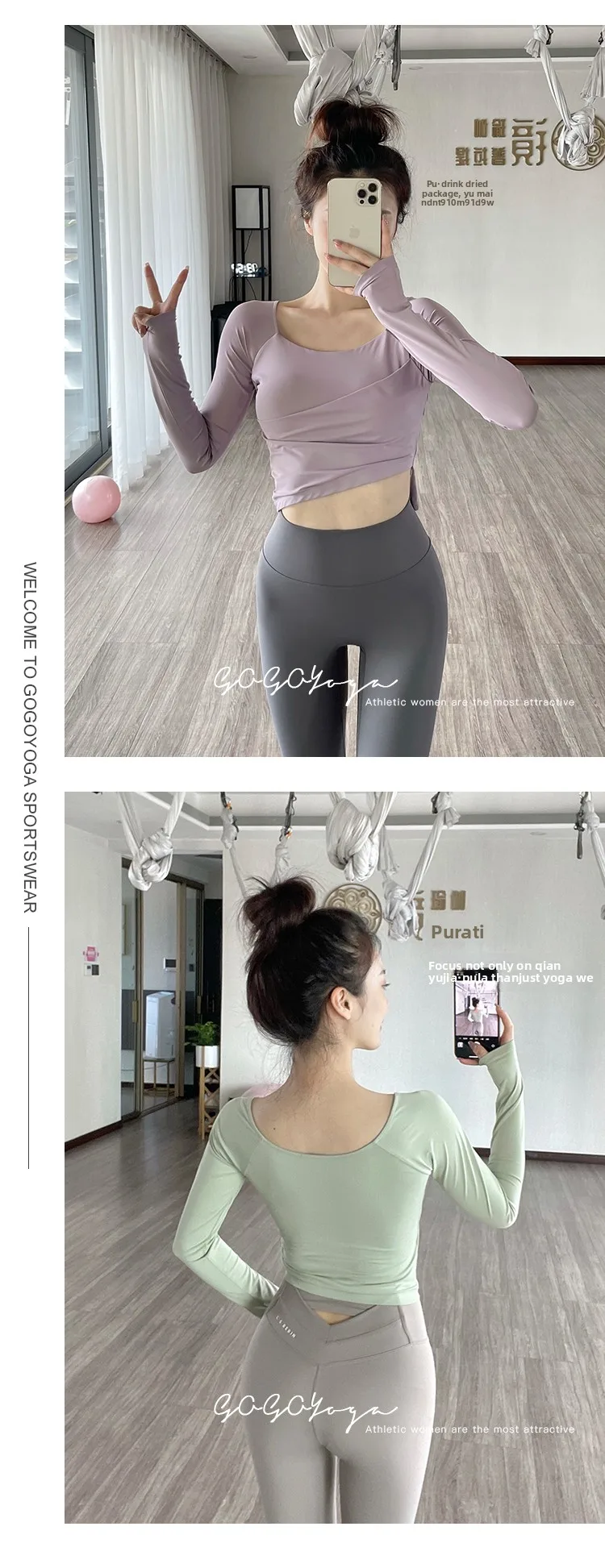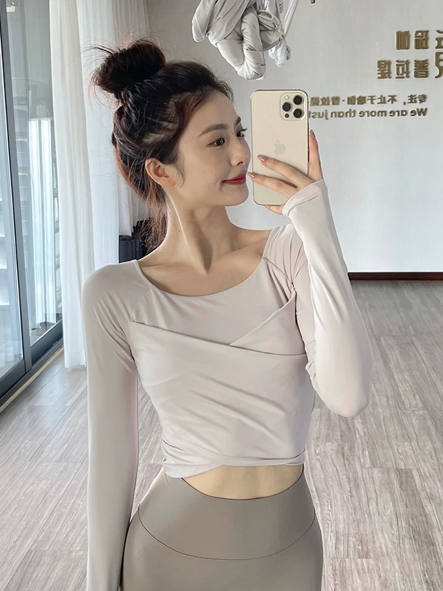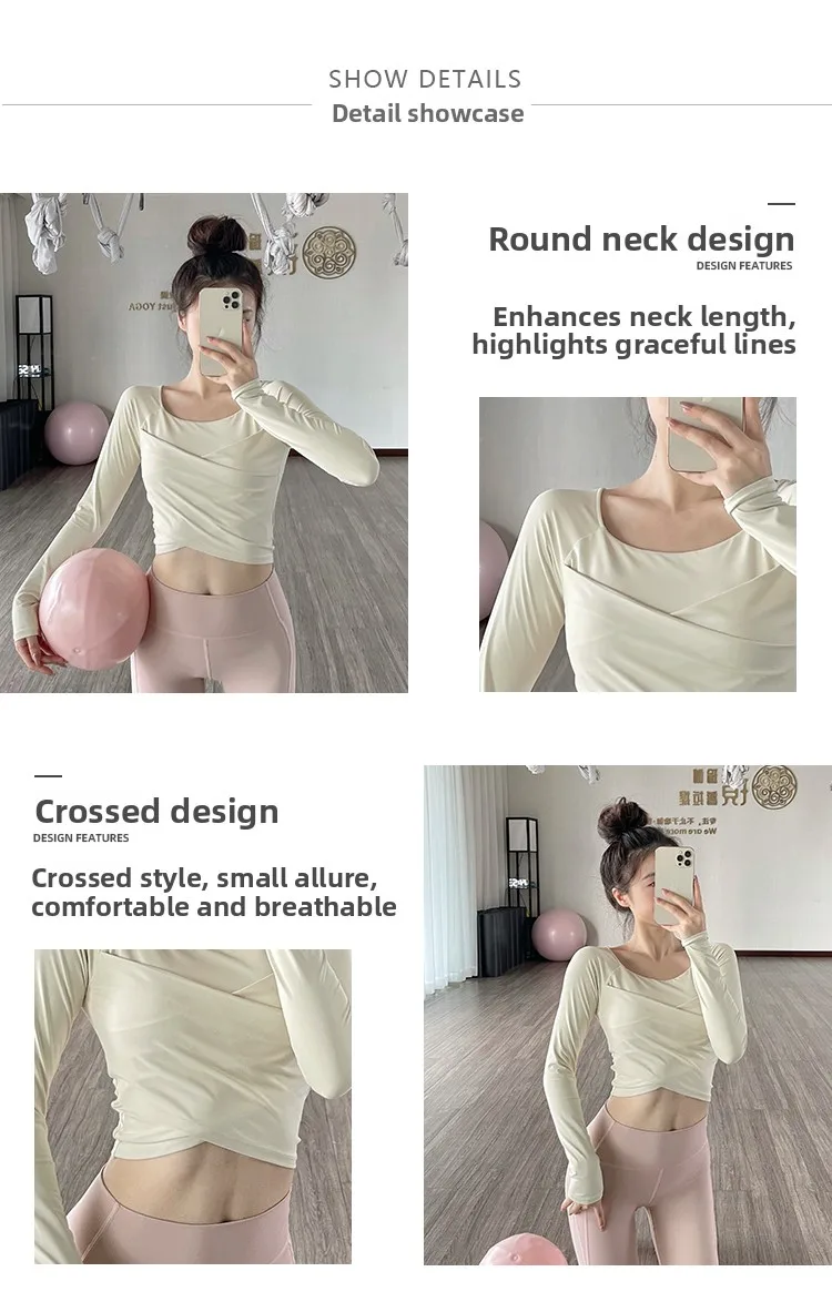 The new autumn sports yoga clothing features a simple square neckline and regular sleeves, offering a versatile look suitable for various occasions.