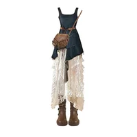 This dress set features a premium design with an irregular hemline and lace detailing, exuding an air of sophistication and elegance.