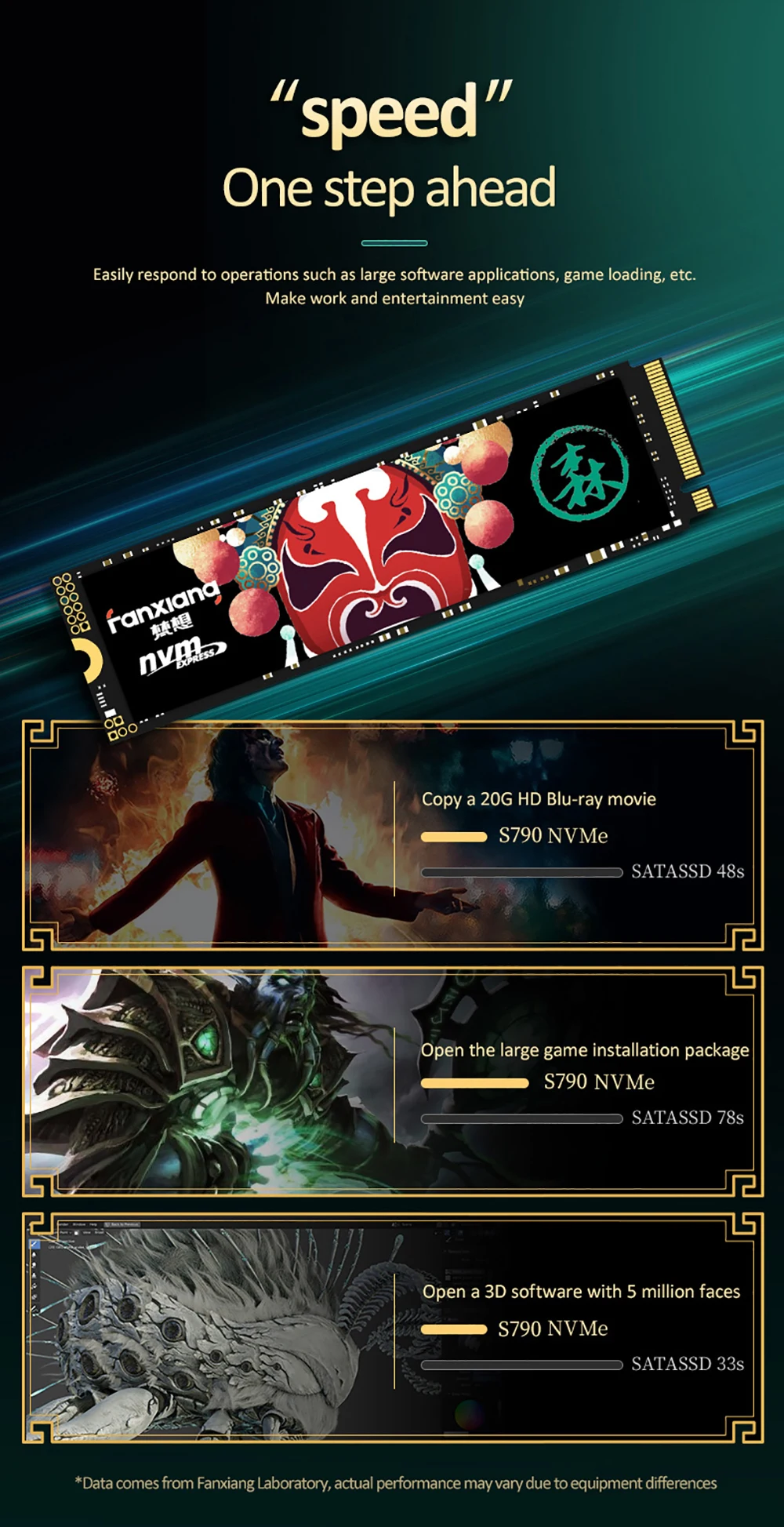 Fanxiang S790 M.2 SSD adds graphene heat dissipation stickers to provide effective heat dissipation control for internal ssd,improve its performance and service life,up to 4000TBW (TeraBytes Written)