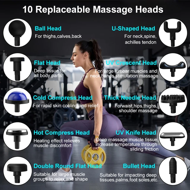 【10 Massage Heads & Special Heads】 You can enjoy a variety of massages with a total of 5 combinations of massage heads for each type and special heads for hot and cold massage. The head can be changed and used to suit the area and application. There are four basic massage heads: Flat, Fork, Round, and Bullet. The hot and cold massage heads can be operated separately to provide warm, cool and micro vibration modes