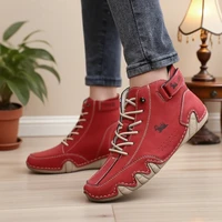 Fashio Women High Top Boots Breathable Handmade Leather Soft Flat Shoes Luxurious Brand Casual Durable Rubber Walking Loafers