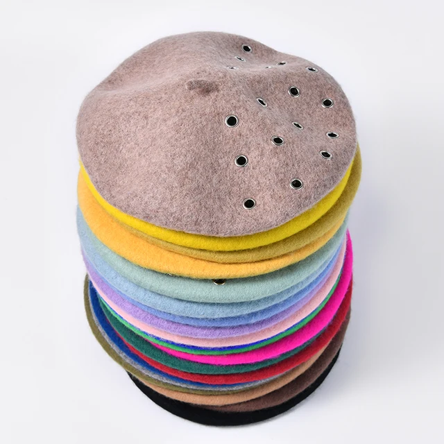 -49%Description: Fashion 17 Colorways Woman Winter Hat Wool Solid Color Beret Female Soft 100% Wool Hat With Hole Gift Dropshipping Wholesales