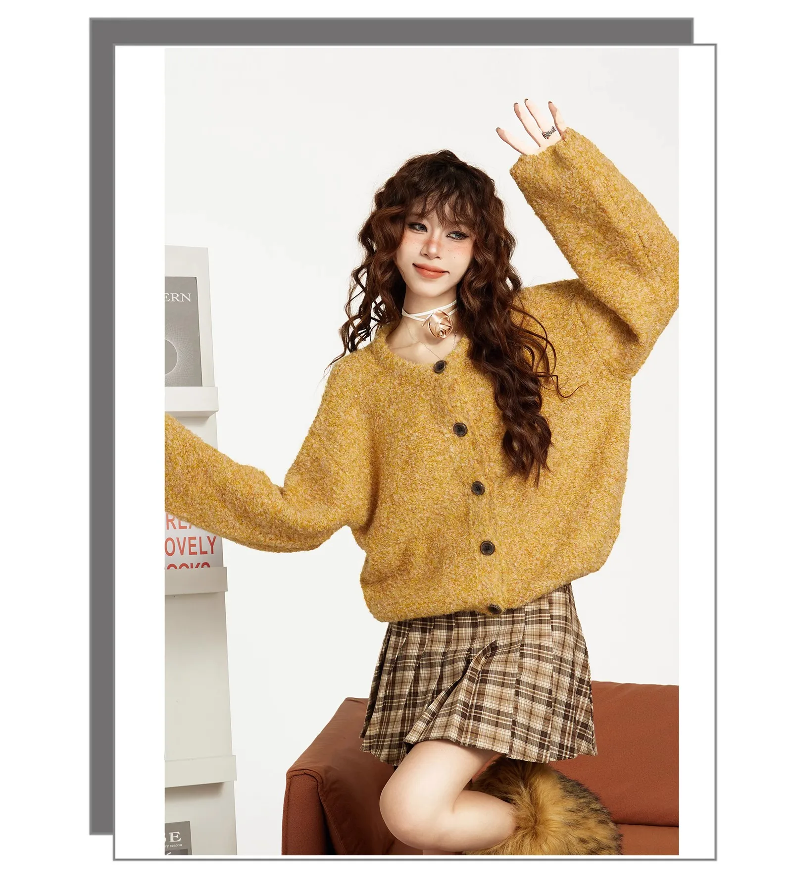 Be the first to review “Fashion Autumn Women Long Sleeve O-neck Loose Yellow Knitted Top Winter Elegant Sweater Korean Style”