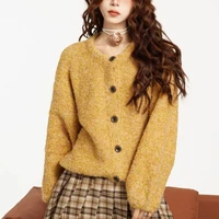 Fashion Autumn Women Long Sleeve O-neck Loose Yellow Knitted Top Winter Elegant Sweater Korean Style Casual Knitwear
