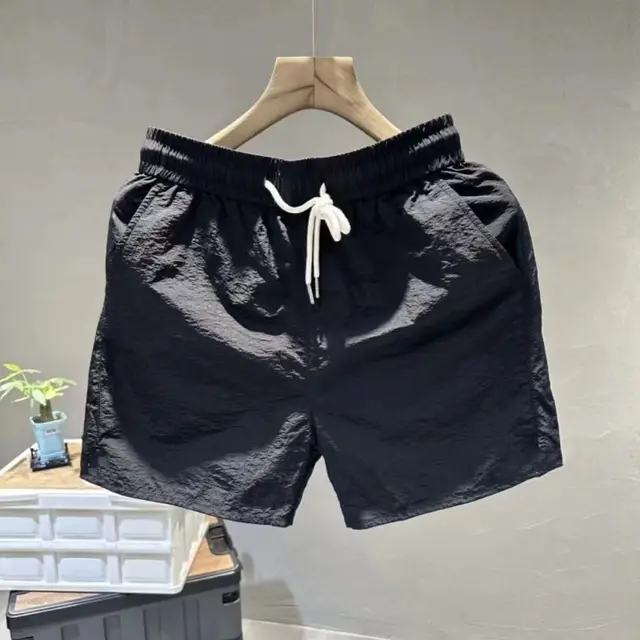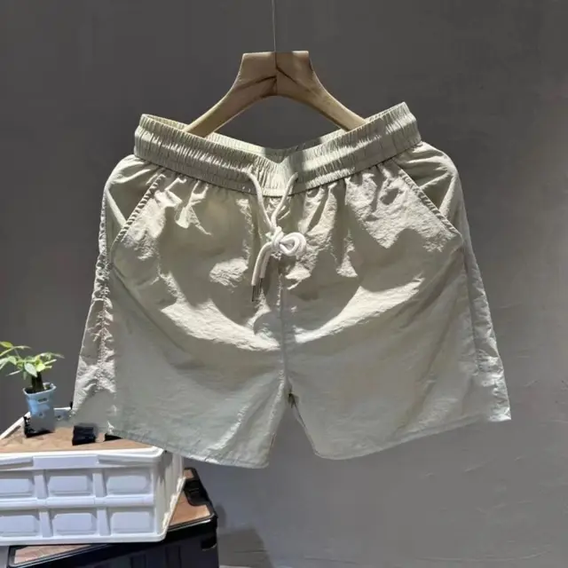 Solid Color Versatile Men Thin Style Simple Summer Elastic Waist Slimming Sports and Casual 5-point Pants