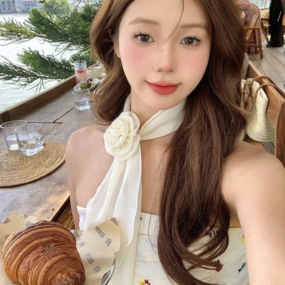 Elegant and Stylish: Floral print chiffon neck collar with rose decor adds a touch of sophistication to any outfit.