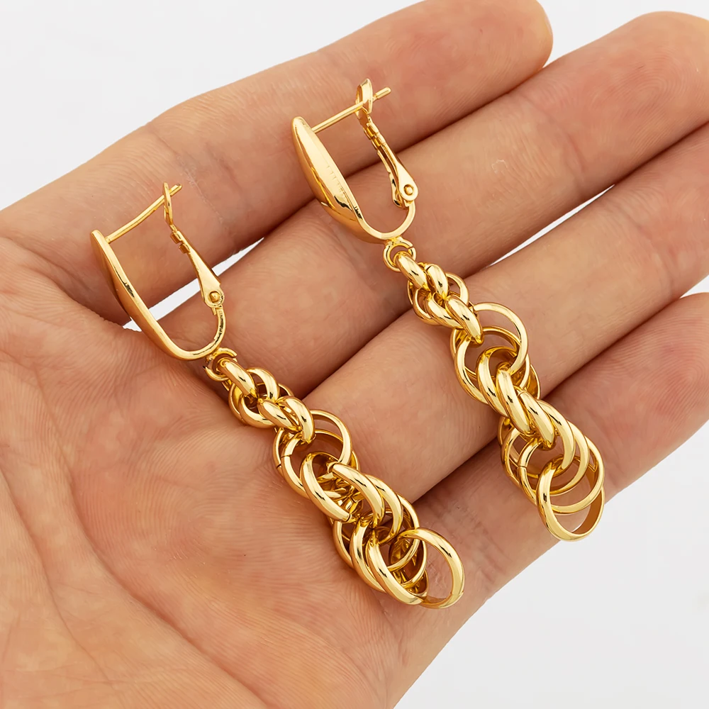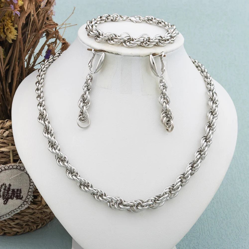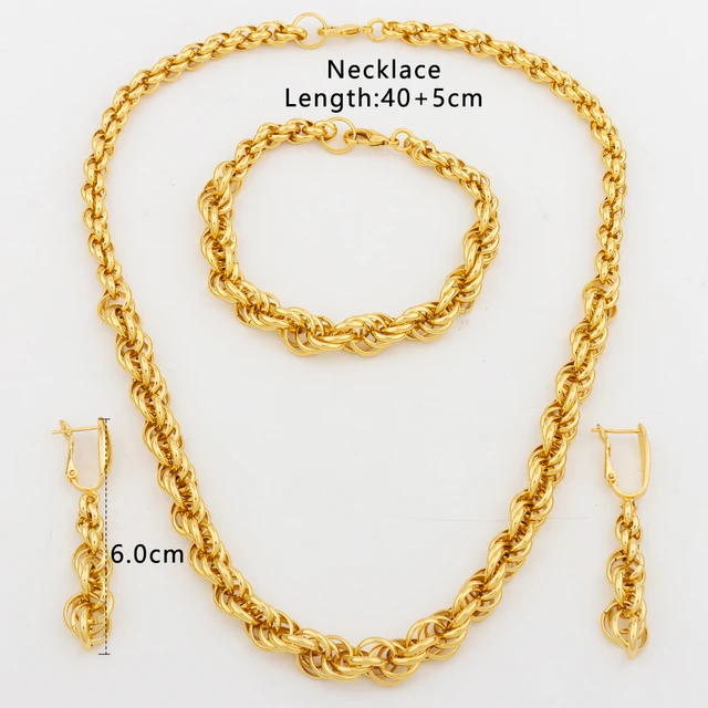Fashion Copper Chain Dubai Jewelry Set Luxury Earrings Necklace Bracelet Women Punk Arab Jewelry Daily