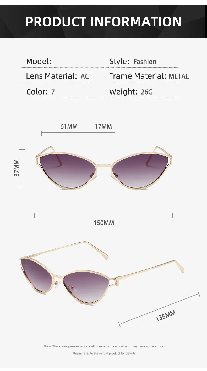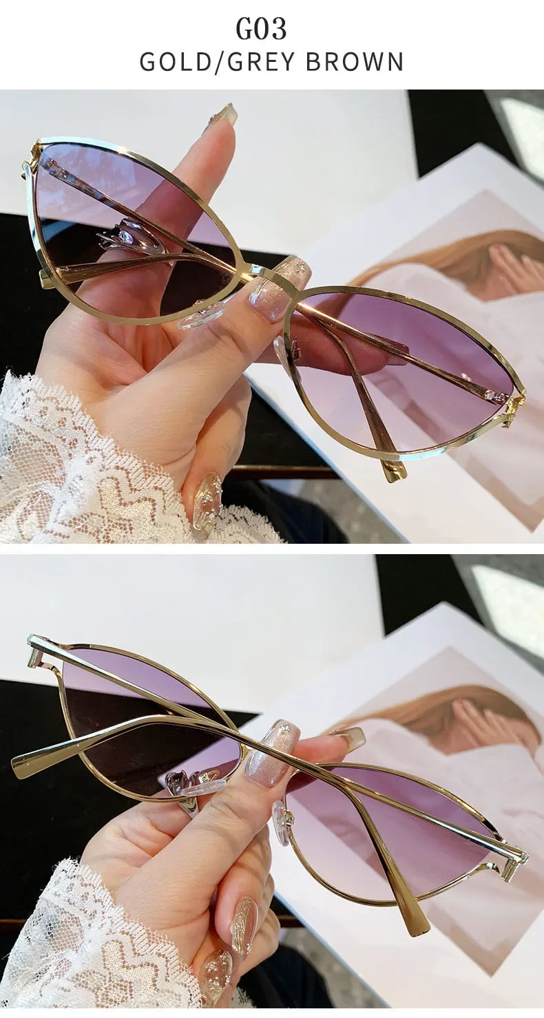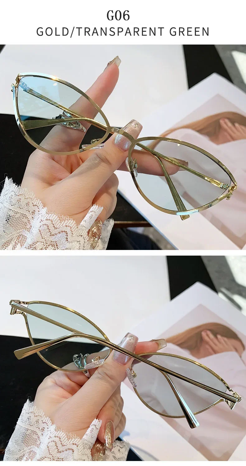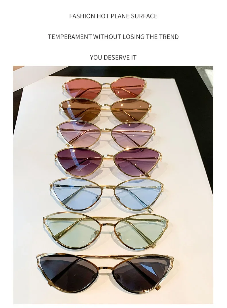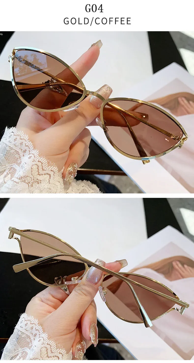 Fashion Finished Cat Eye UV400 Sunglasses Women Trendy Metal Frame Sun Glasses Ladies Vintage Outdoor