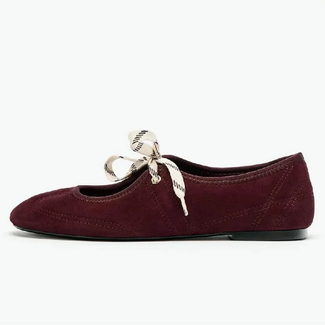 Fashion Lace Up Sewing Design Brand Ballet Flats Women High Quality Faux Suede Mary Jane Shoes Comfortable