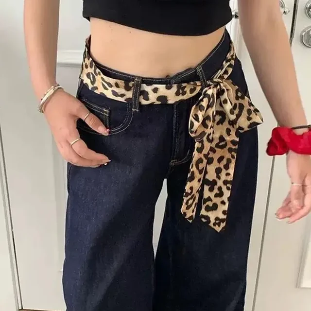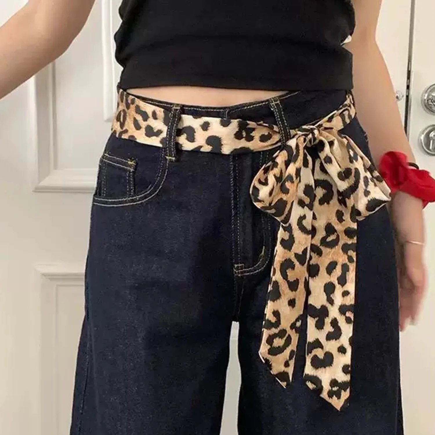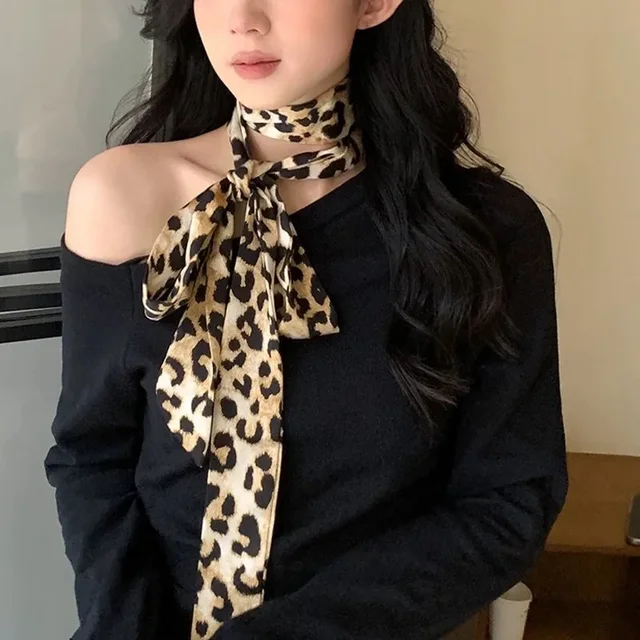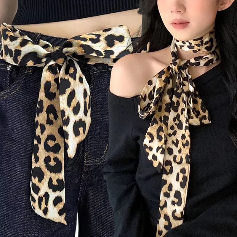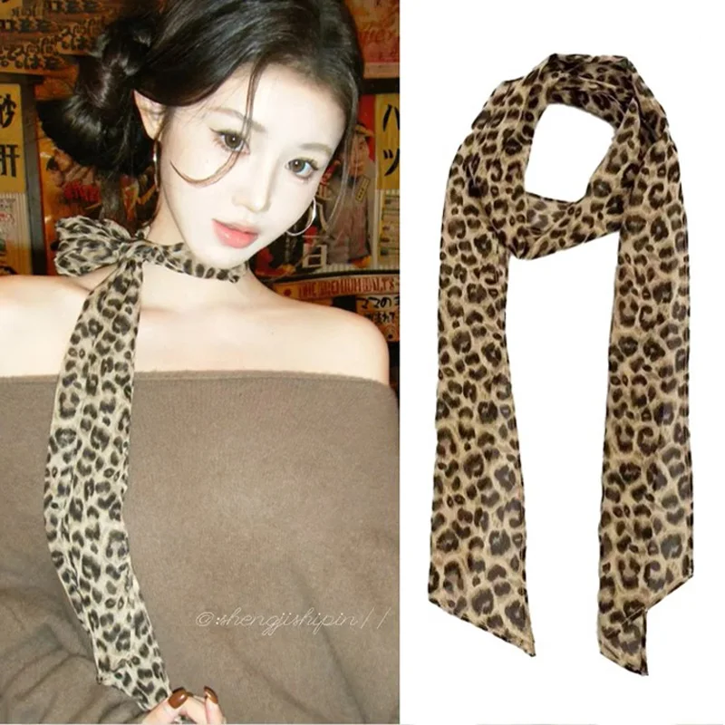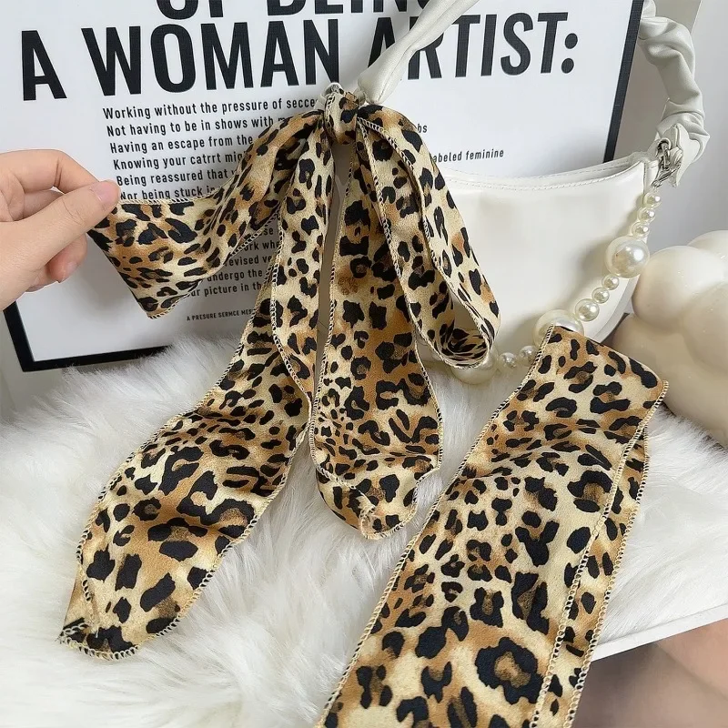 Sweet Pink Small Long Scarf Simple Fashion Print Flower Silk Scarf Ribbon Headband for Female Bag Decoration Accessories