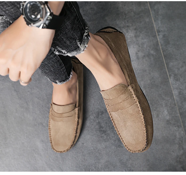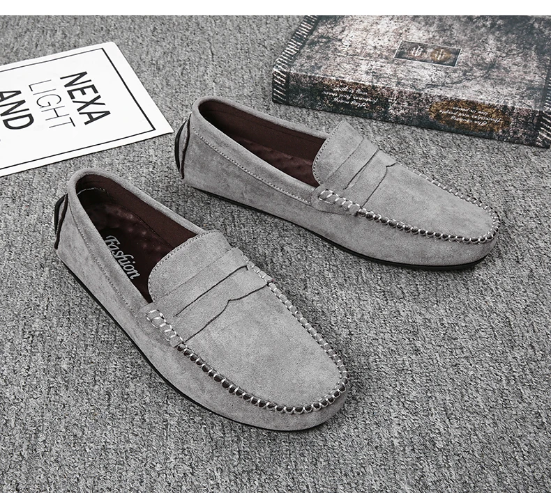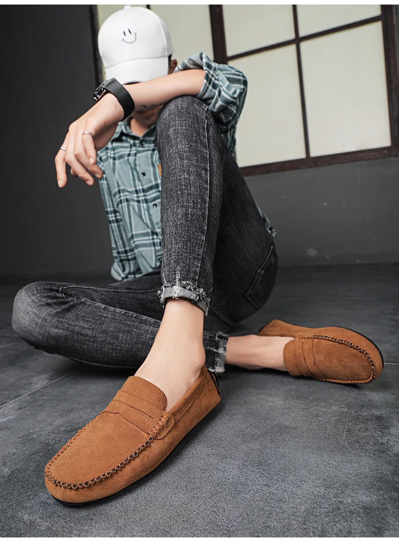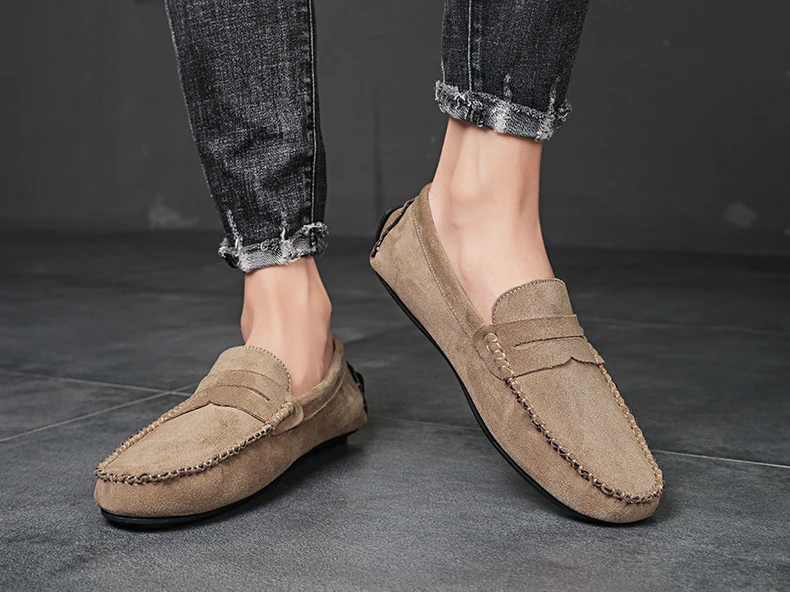 Fashion Lightweight Suede Men Casual Shoes Lazy Shoes Male Breathable Slip-on Mens Driving Shoes Comfortable