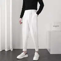 Fashion Men Casual Pants Elastic Waist Small Feet Slim Korean Style Pleated Tapered Male Blazer Pants