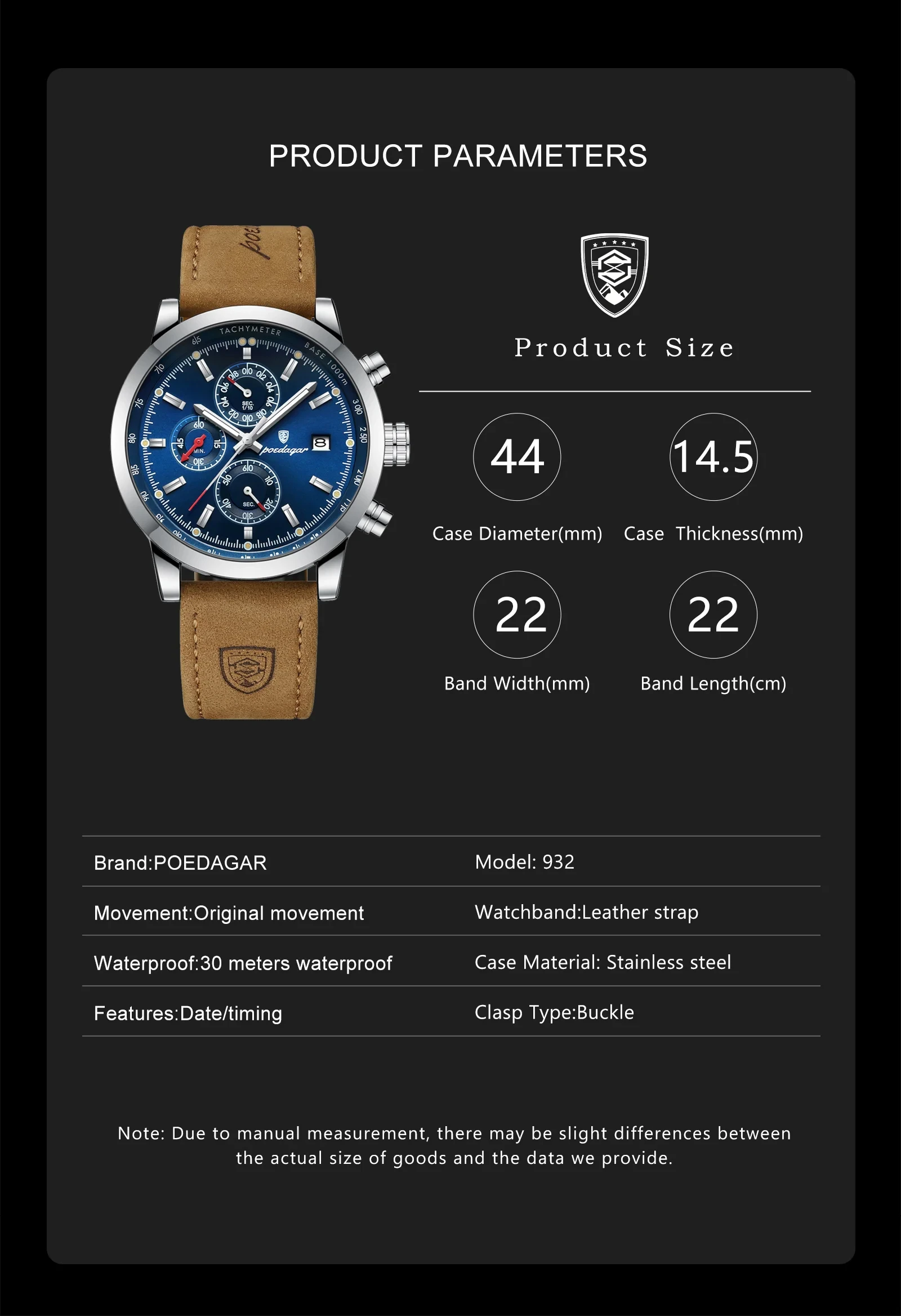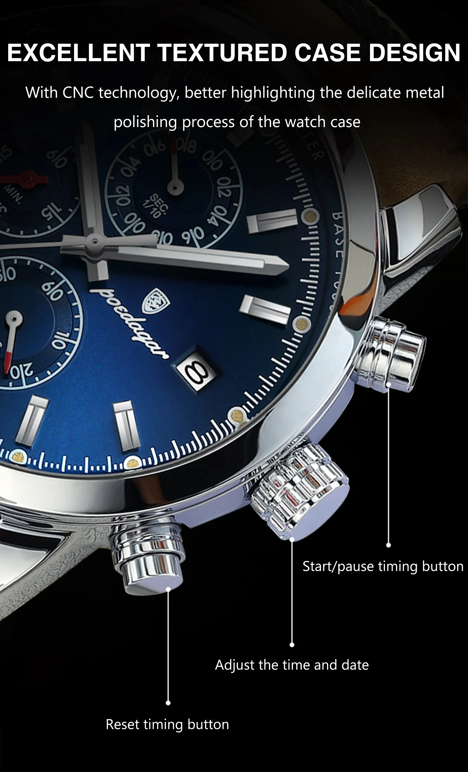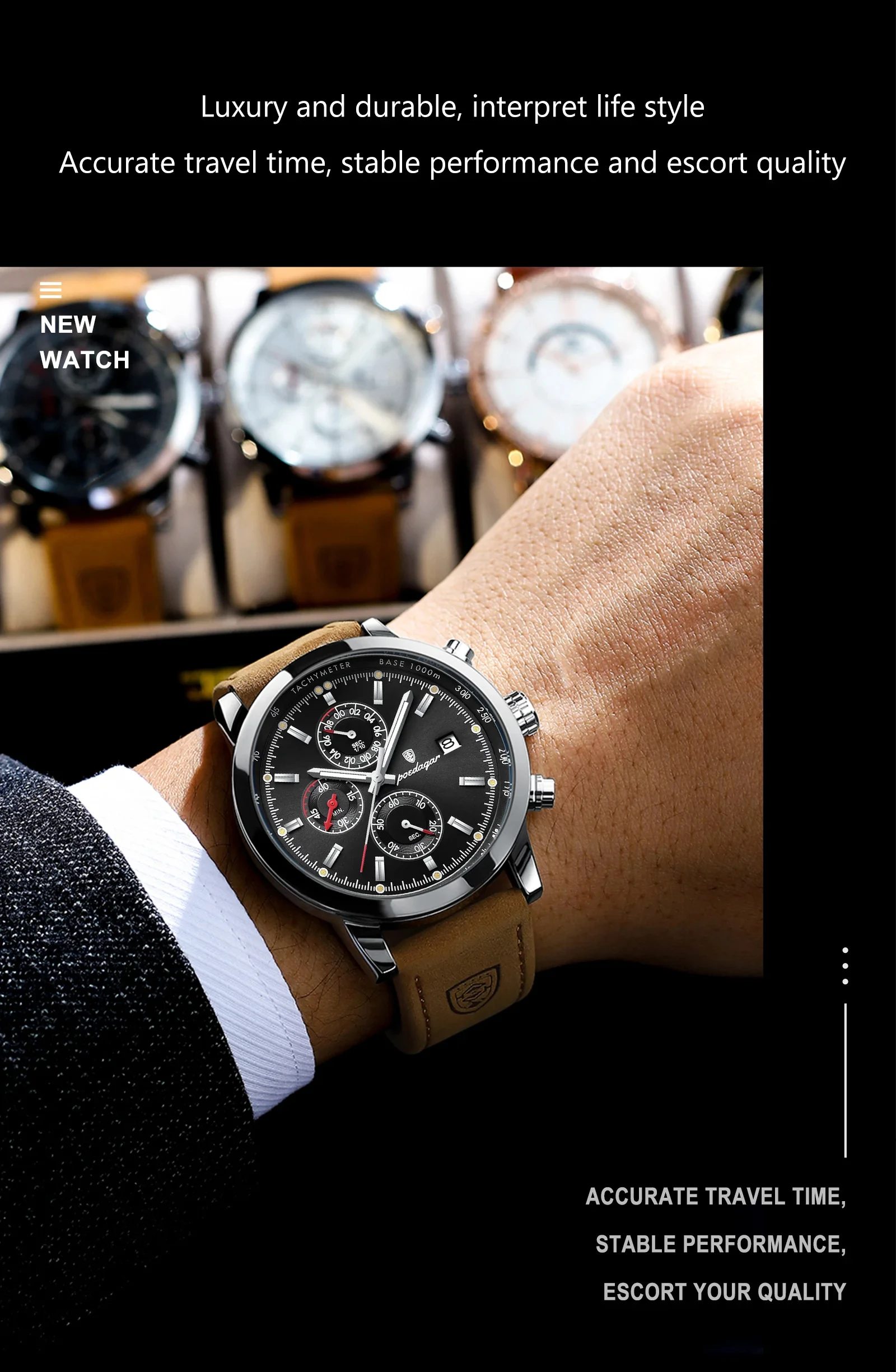 POEDAGAR Sports Casual Man Watch Date Waterproof Luminous Leather Chronograph Men's Watch Business Luxury Quartz Watches For Men