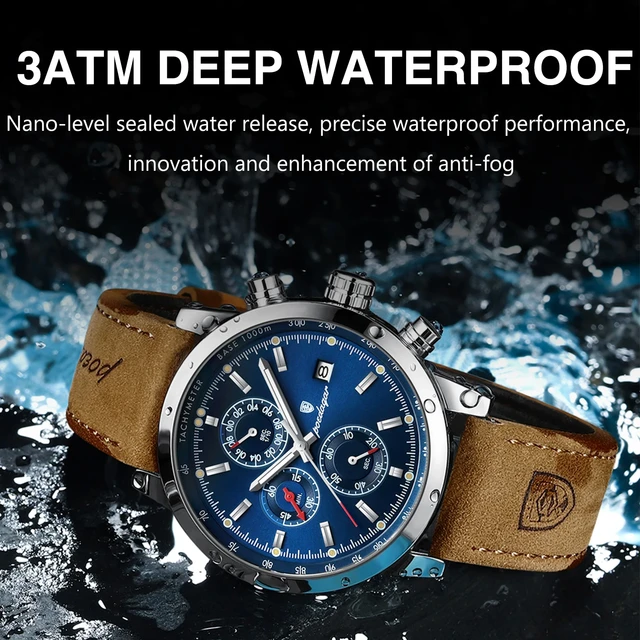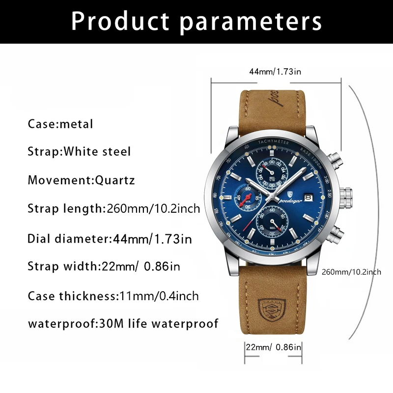 POEDAGAR Sports Casual Man Watch Date Waterproof Luminous Leather Chronograph Men's Watch Business Luxury Quartz Watches For Men