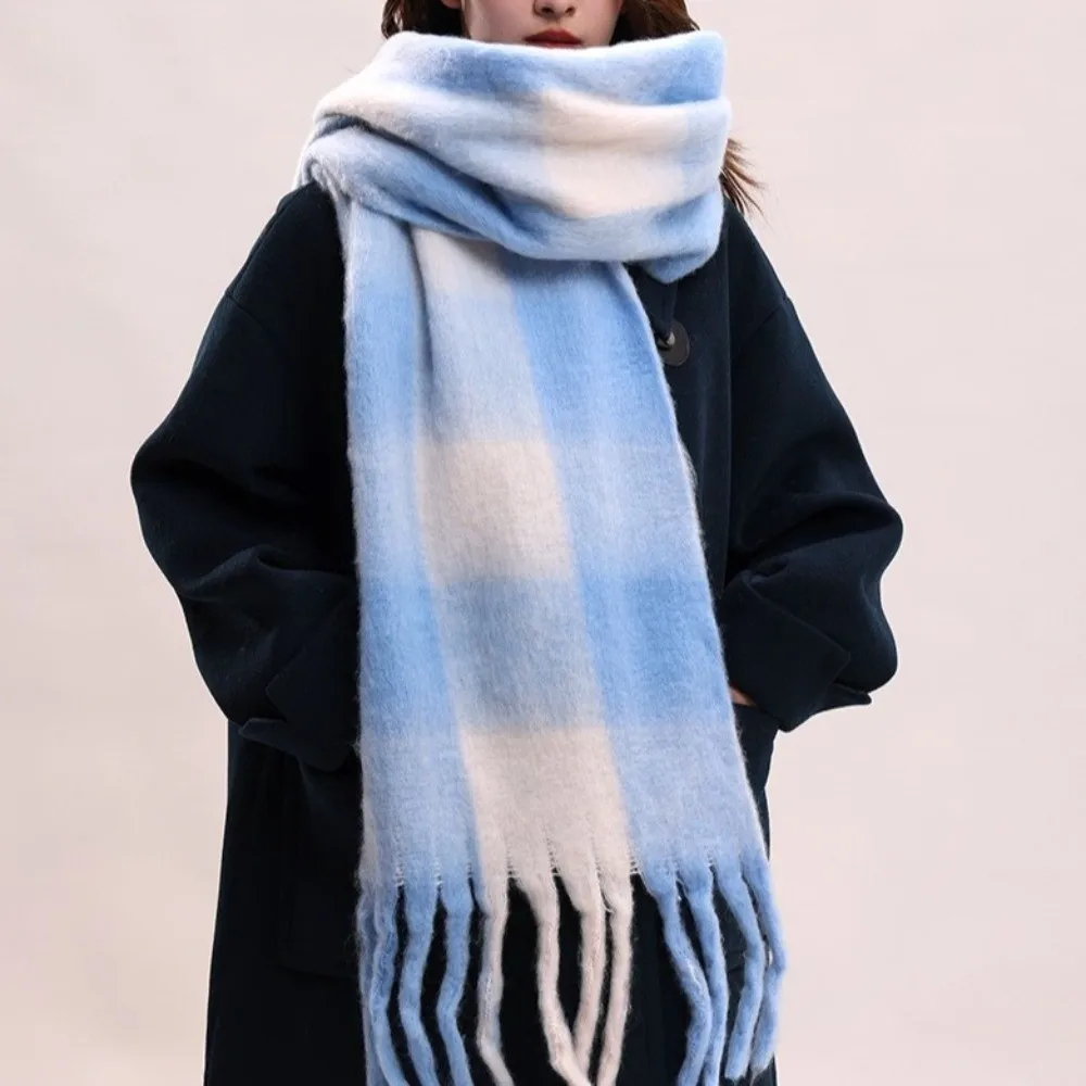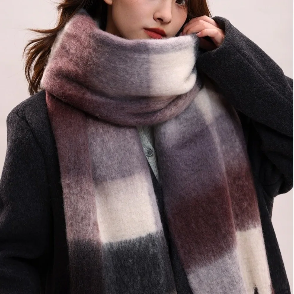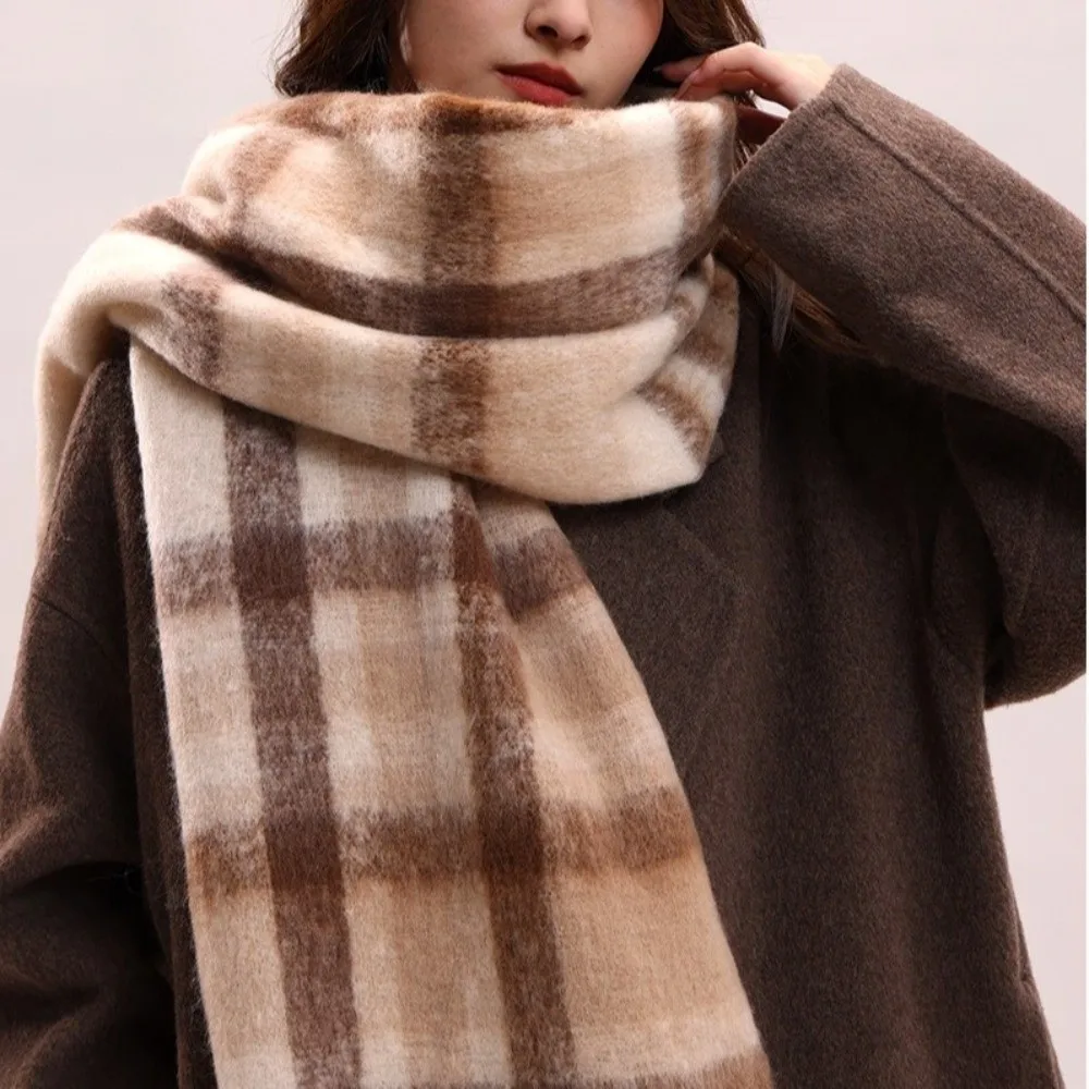 Fashion Mohair Plaid Wool Scarf Tassel Thicken Winter Cashmere Scarves Korean Style Warm Long Shawl Autumn Winter