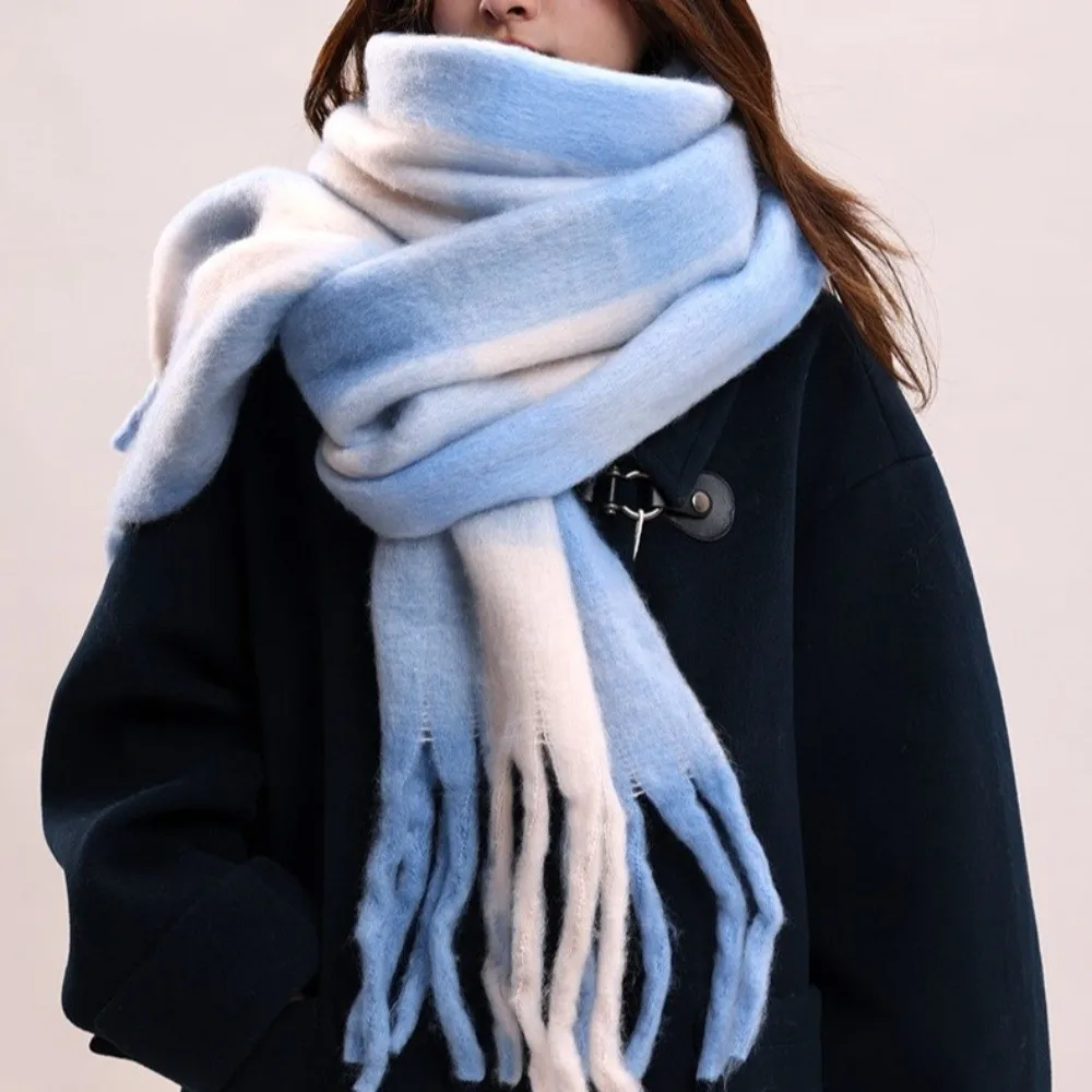 Fashion Mohair Plaid Wool Scarf Tassel Thicken Winter Cashmere Scarves Korean Style Warm Long Shawl Autumn