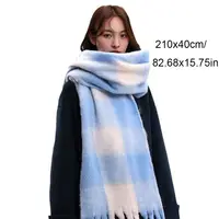 Fashion Mohair Plaid Wool Scarf Tassel Thicken Winter Cashmere Scarves Korean Style Warm Long Shawl Autumn Winter