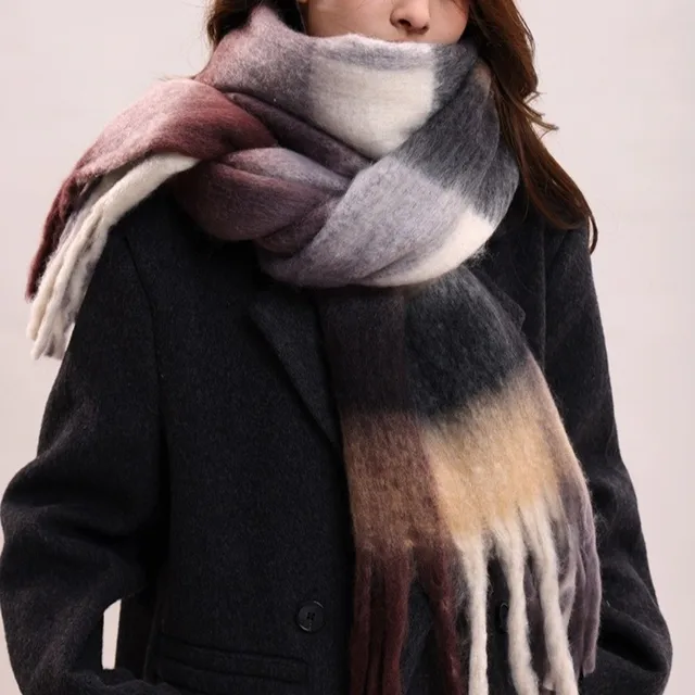 Fashion Mohair Plaid Wool Scarf Tassel Thicken Winter Cashmere Scarves Korean Style Warm Long Shawl Autumn
