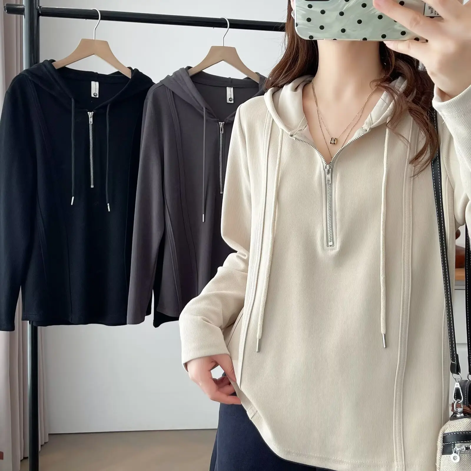 Fashion Plus Size Women’s Hoodie Casual And Elegant three-dimensional Cut Long Sleeve Hooded Top