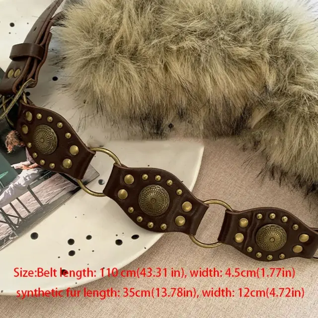 Size:Belt length: 110 cm(43.31 in), width: 4.5cm(1.77in), synthetic fur length: 35cm(13.78in), width: 12cm(4.72in)