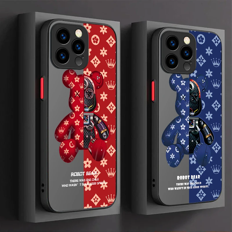 Fashion Robot Bear Phone Case For iPhone 17 Air 15 16E 16 14 13 12 11 Pro Max XR 7 8 Plus SE 2020 Shockproof