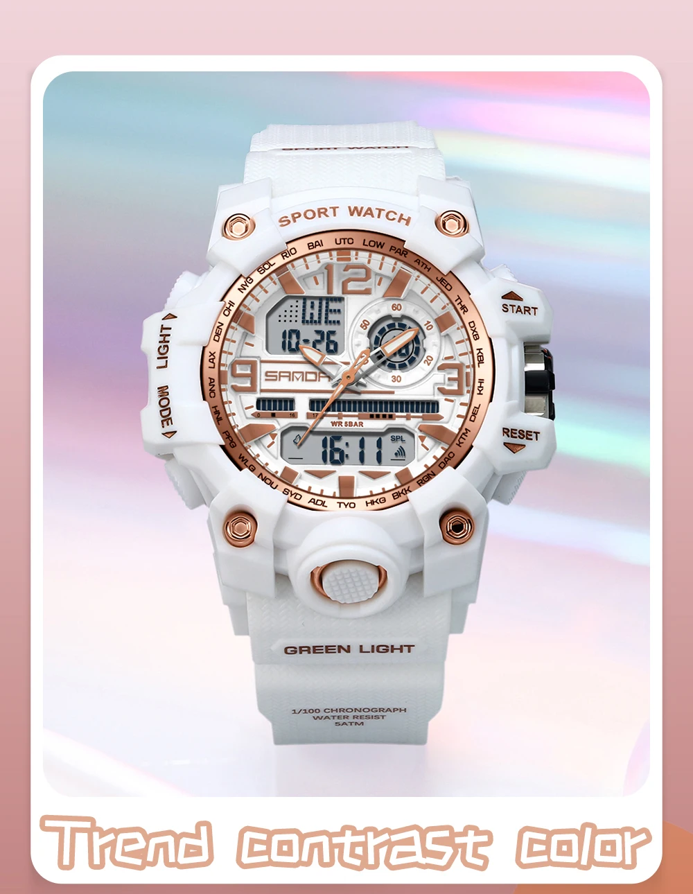 SANDA New 747 Fashion Retro Women's Electronic Watch Waterproof Dual Display Luminous Light and Thin Women's Electronic Watch
