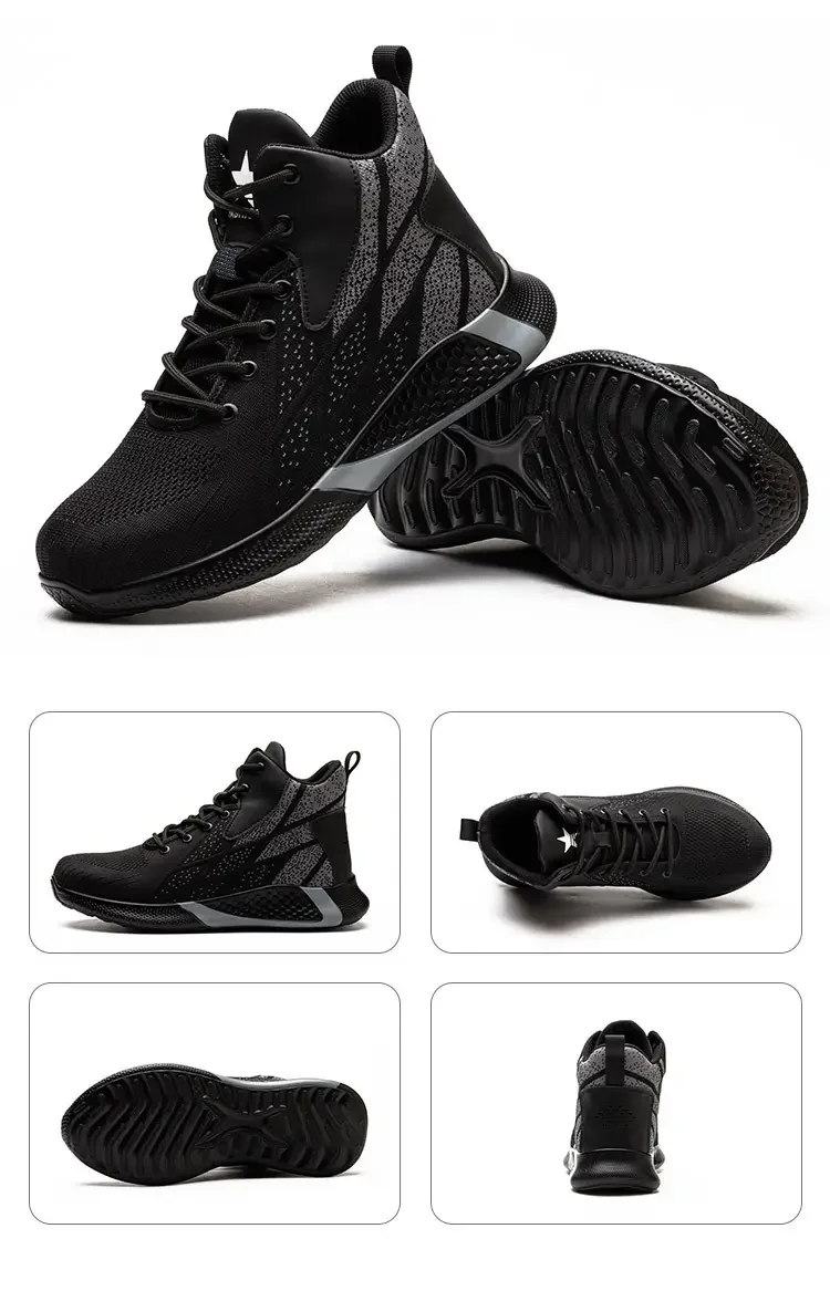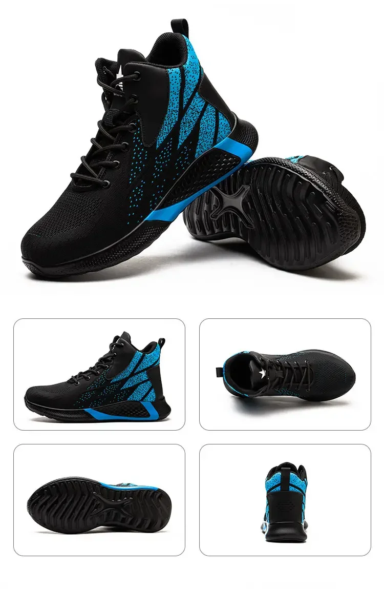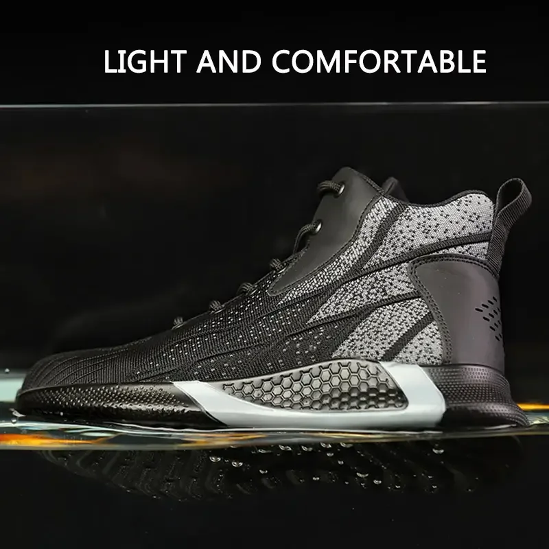 Super light safety shoe:It is like the weight of a pair of running shoes. They can help you to work happily all day without exhausting your feet. With super soft insoles and High elastic sole, your feet are safe and comfortable. Flying knit upper is very soft, Keep your feet comfortable and breathable.