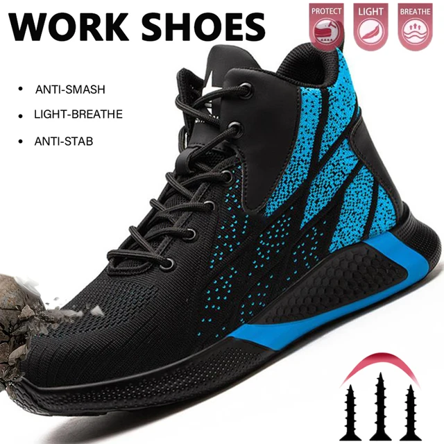 Super light safety shoe:It is like the weight of a pair of running shoes. They can help you to work happily all day without exhausting your feet. With super soft insoles and High elastic sole, your feet are safe and comfortable. Flying knit upper is very soft, Keep your feet comfortable and breathable.