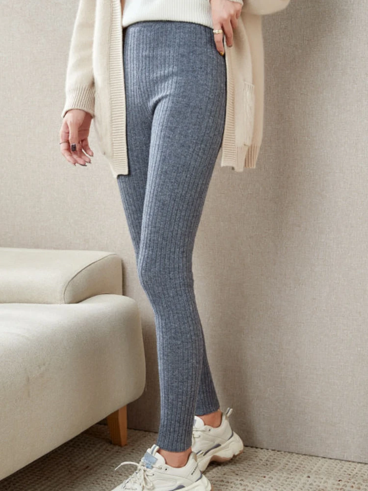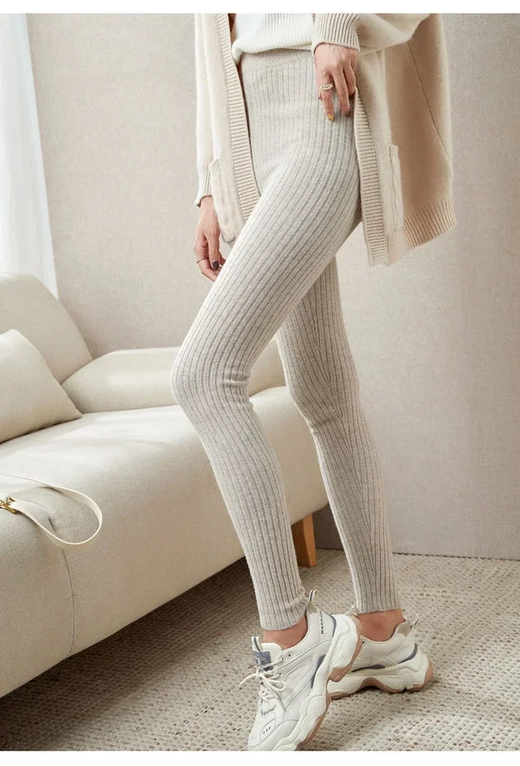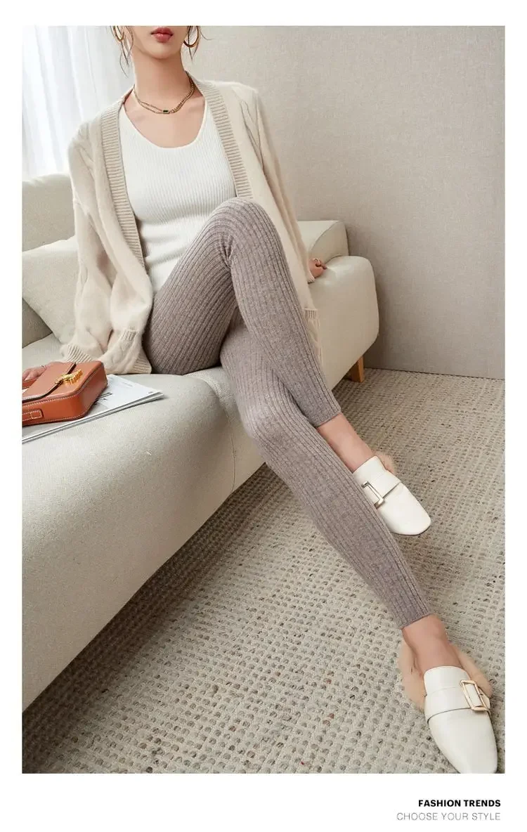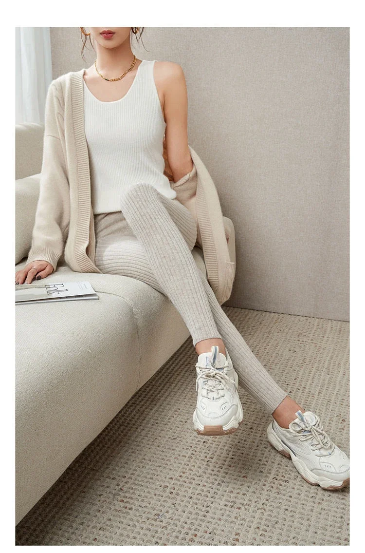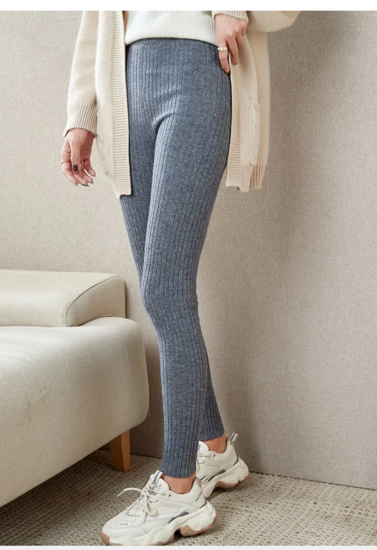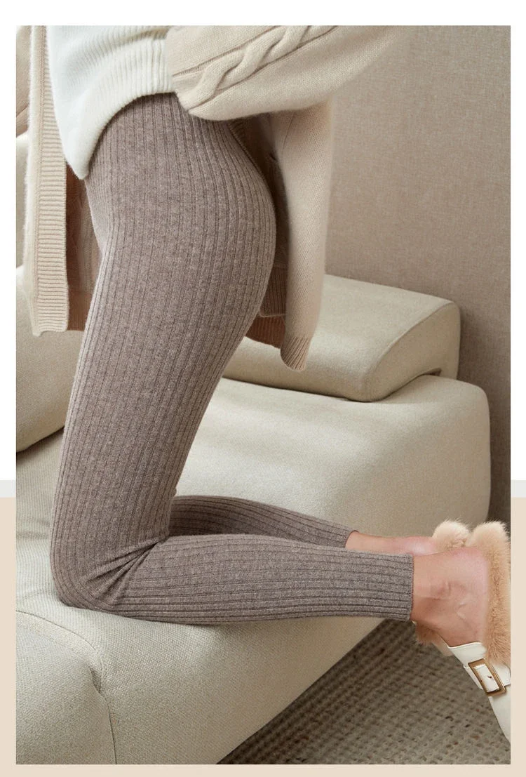 Fashion Slim Autumn Winter Wool Women’s Pants Solid Color Warm Oatmeal Knitted Leggings Sexy High