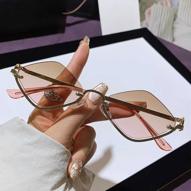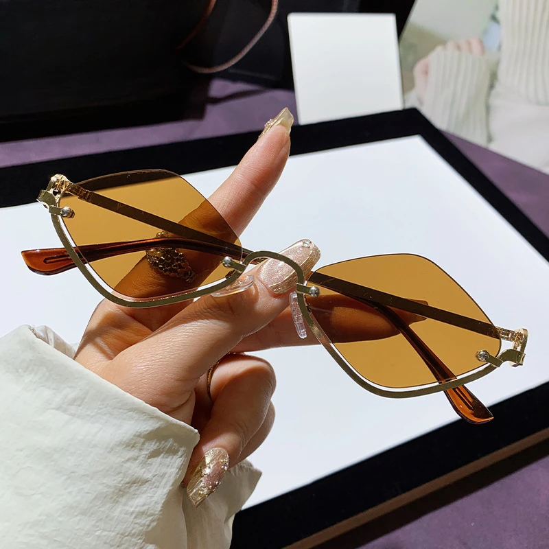 Fashion Small Polygonal Sunglasses Women Luxury Brand Metal Half Frame Sun Glasses Ladies Hipster Sexy Cat Eye Shades Vintage
