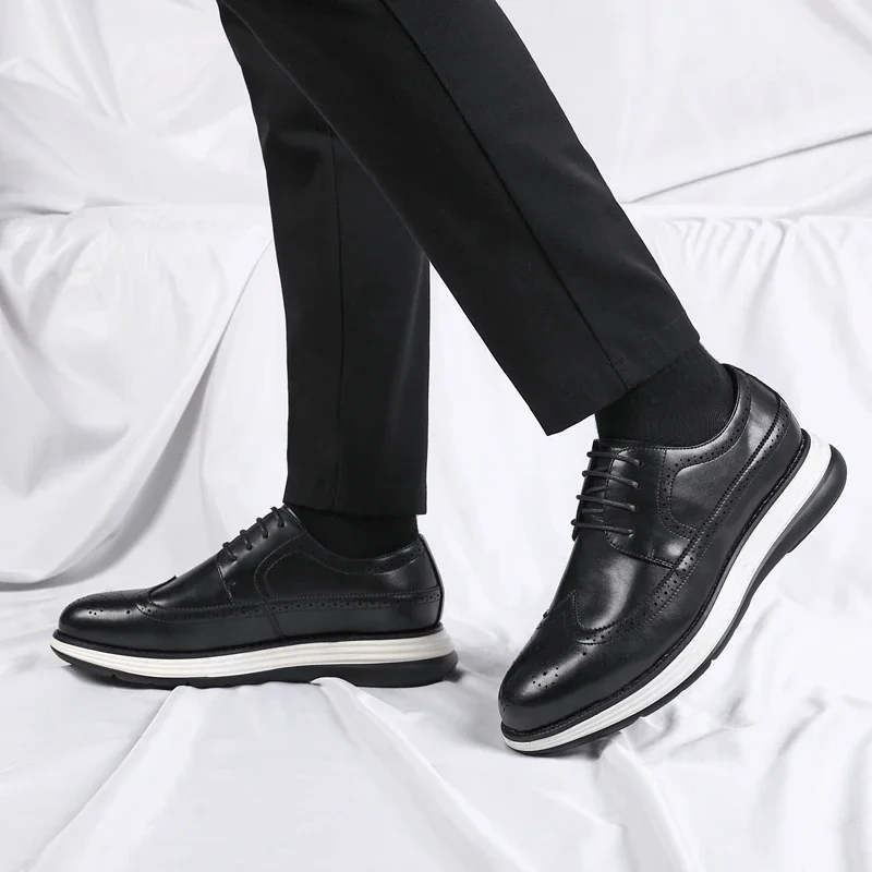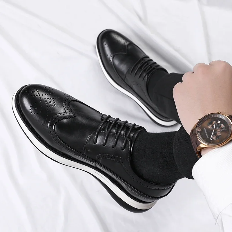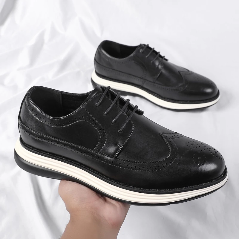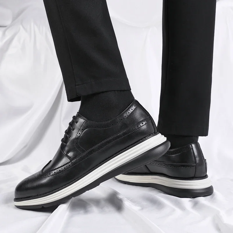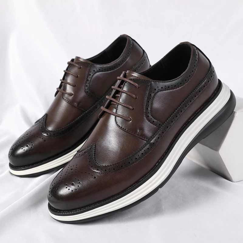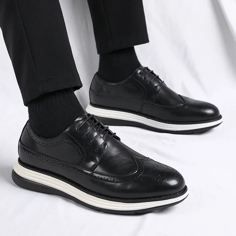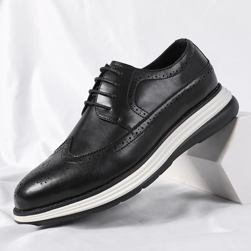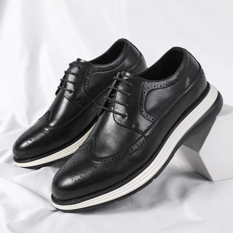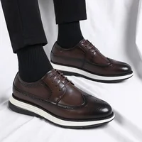 Fashion Soft Bottom Minimalist Shoes Design & Thick Sole for Everyday Use​ 2025 New Casual Leather Lace-Up Men's Business Shoes