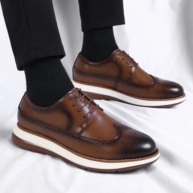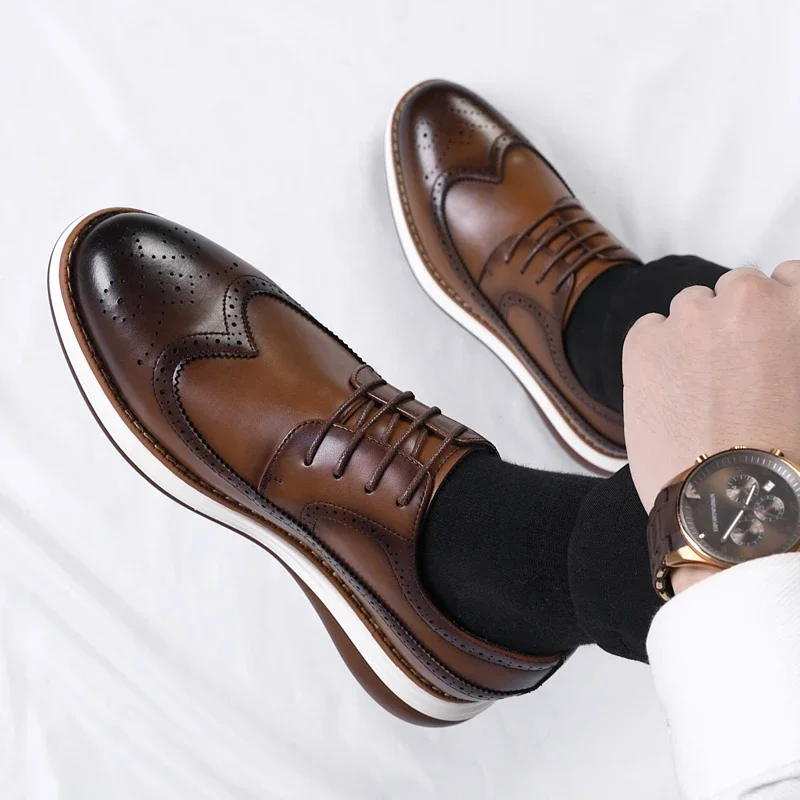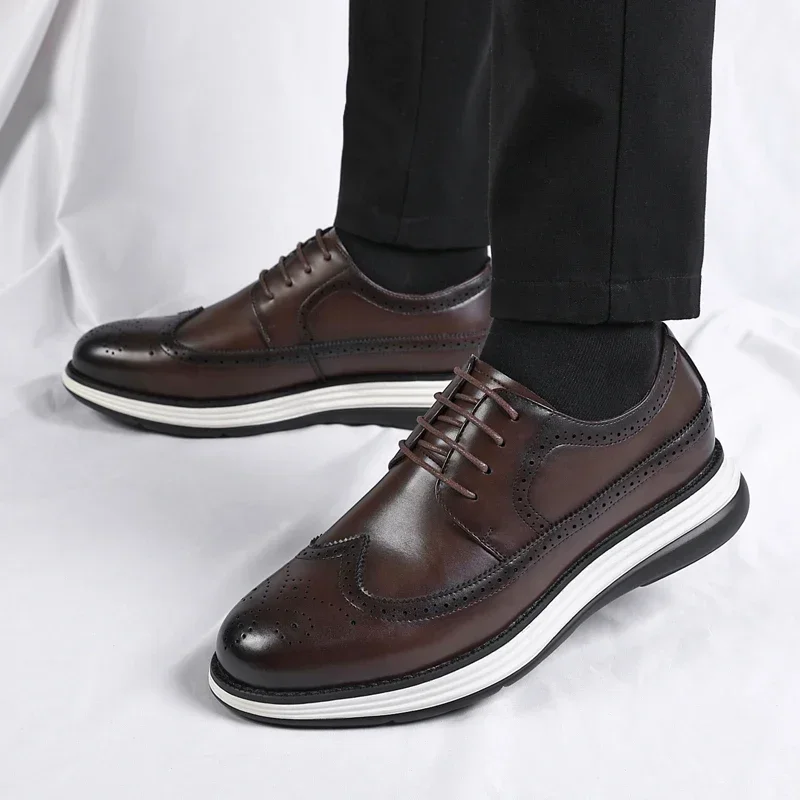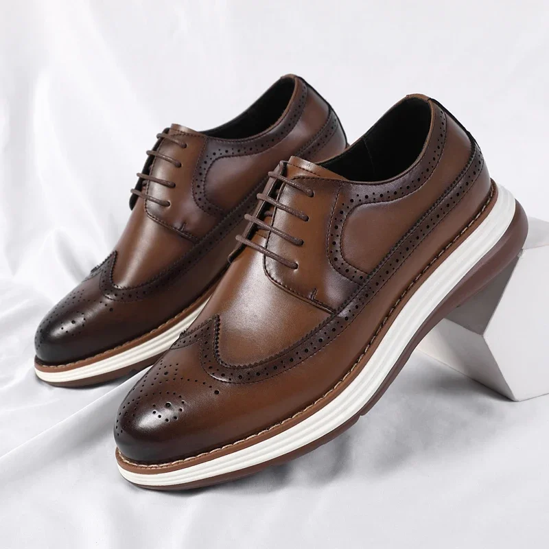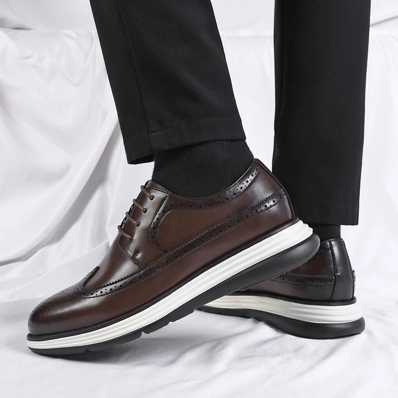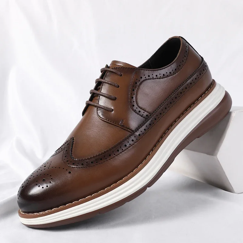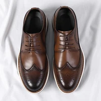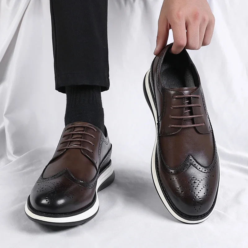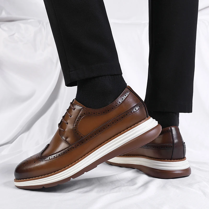 Fashion Soft Bottom Minimalist Shoes Design & Thick Sole for Everyday Use​ 2025 New Casual Leather Lace-Up Men's Business Shoes