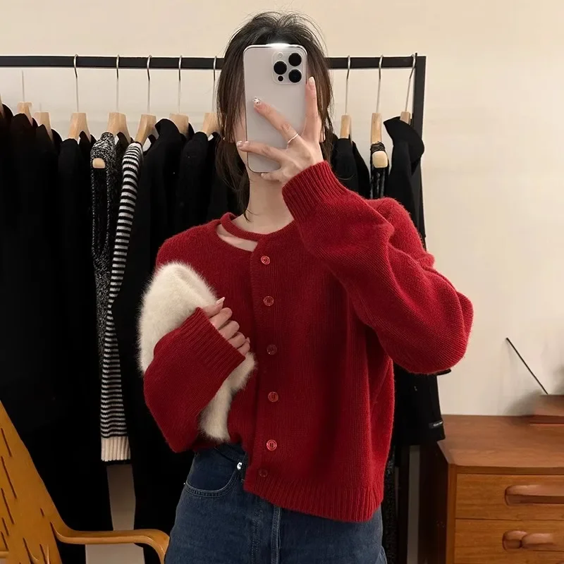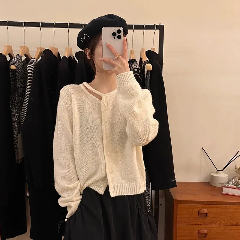 Fashion Spring Autumn New Single Breasted Casual Knitwear Korean O Neck Hollowed Out Knitted Cardigan