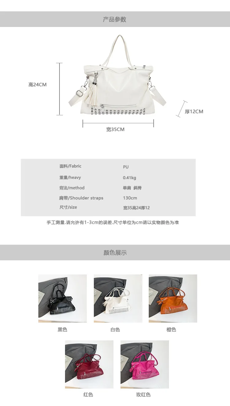 Fashion tassel Women handbag Large Capacity PU Leather Ladies Soft Big Totes With tassels lady Messenger Shoulder Bag bolsos