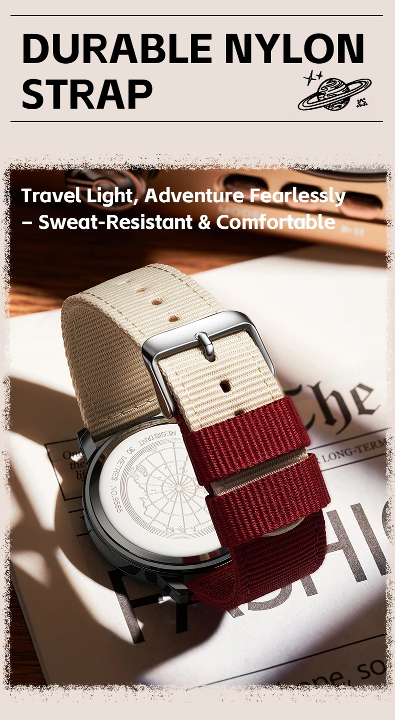 Durable nylon band offers comfort and longevity, suitable for active lifestyles.