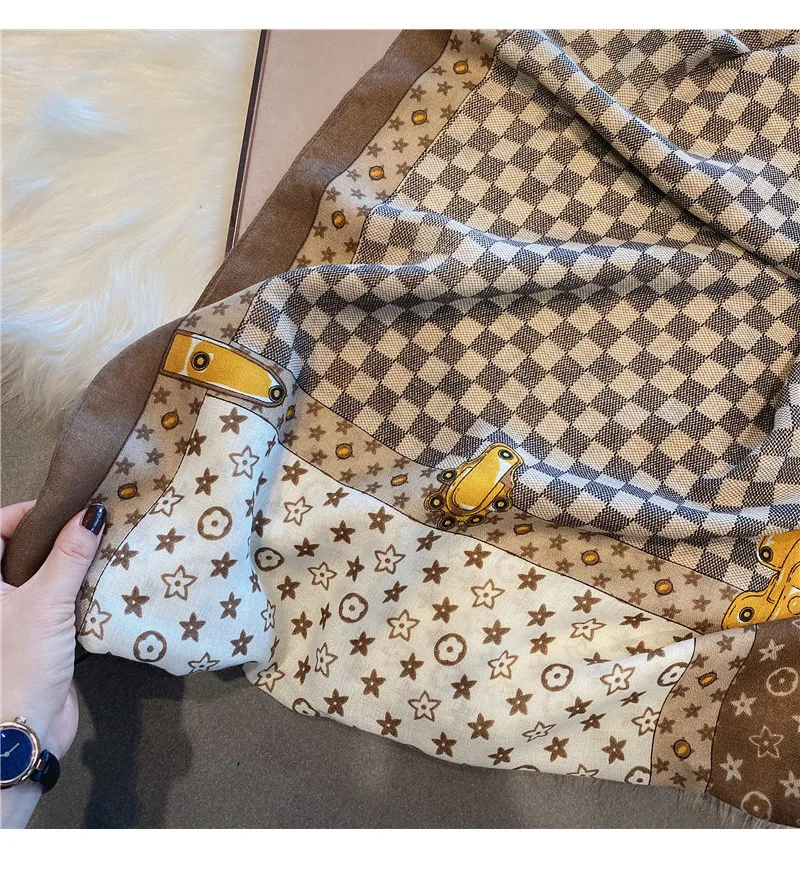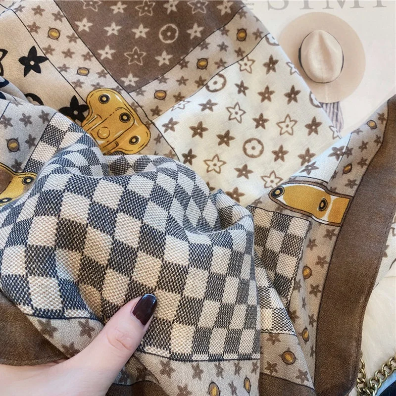 2024 New Scarf Women Winter Color Matching Warm Scarves Imitation Cashmere Letters Double-sided Thickened Air Conditioner Shawl