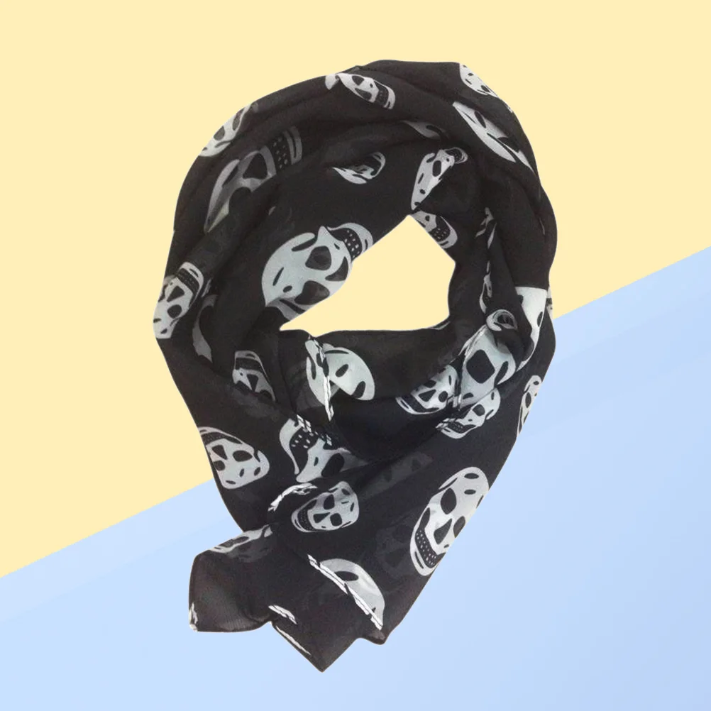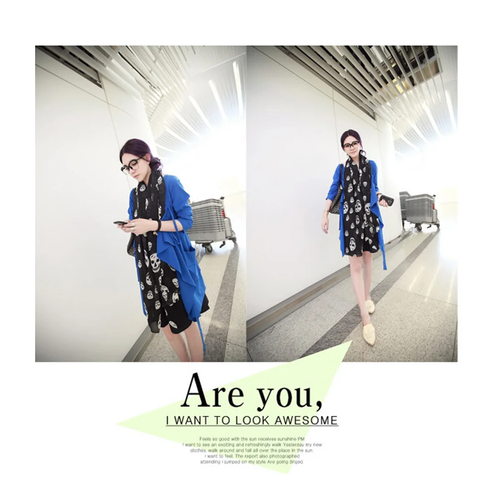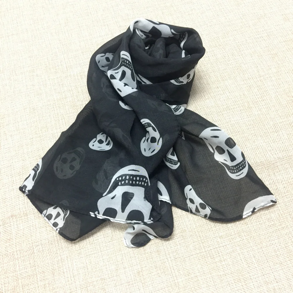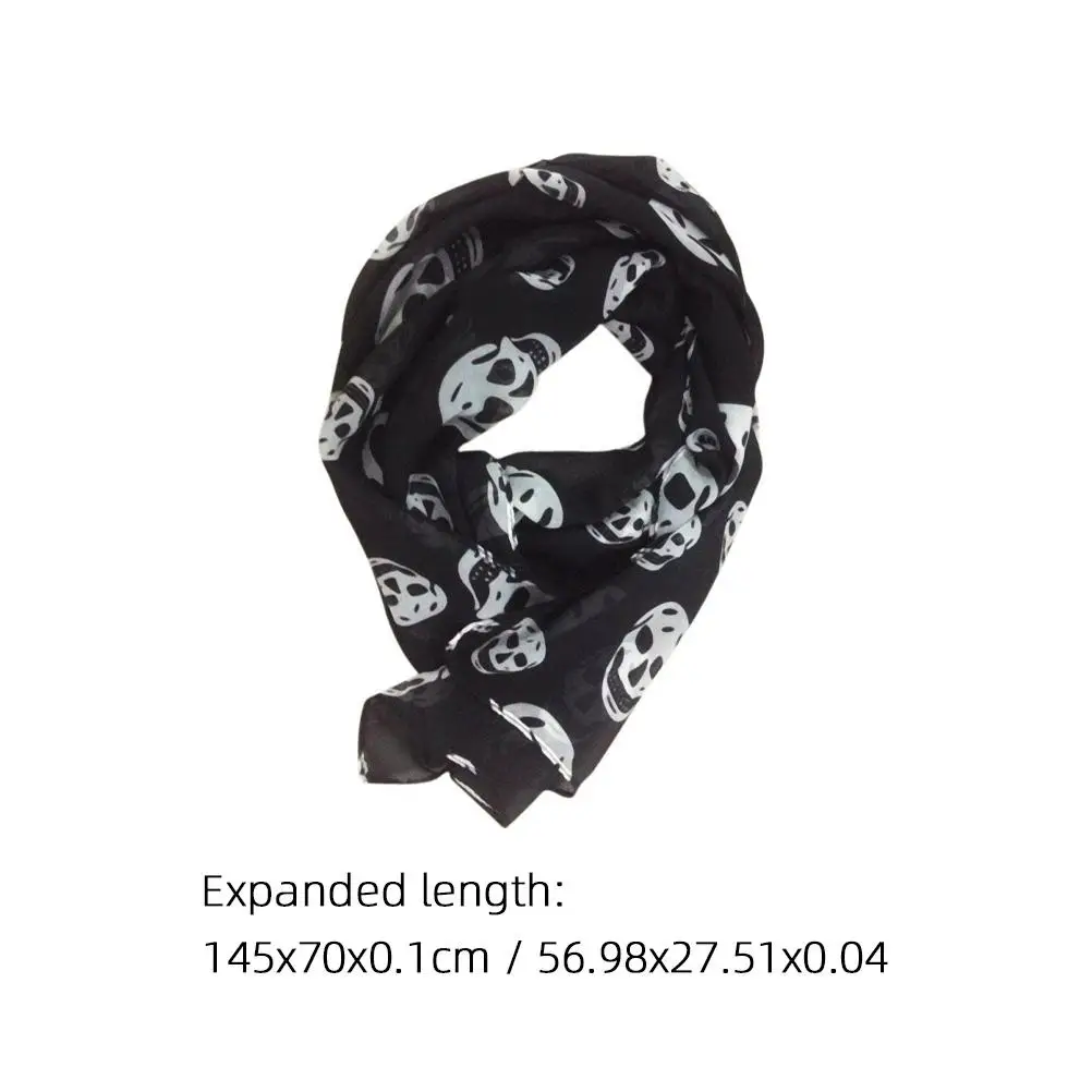 The item is a simple and fashion all-match women’s girls long scarf shawl wrap, which is mainly made of durable chiffon material with good touch feeling, and decorated with some cool skull heads to make it more outstanding and attactive. Therefore, the scarf can not only be used as a shawl in air-condition room, but also act as a neck scarf to keep warm in spring and autumn.