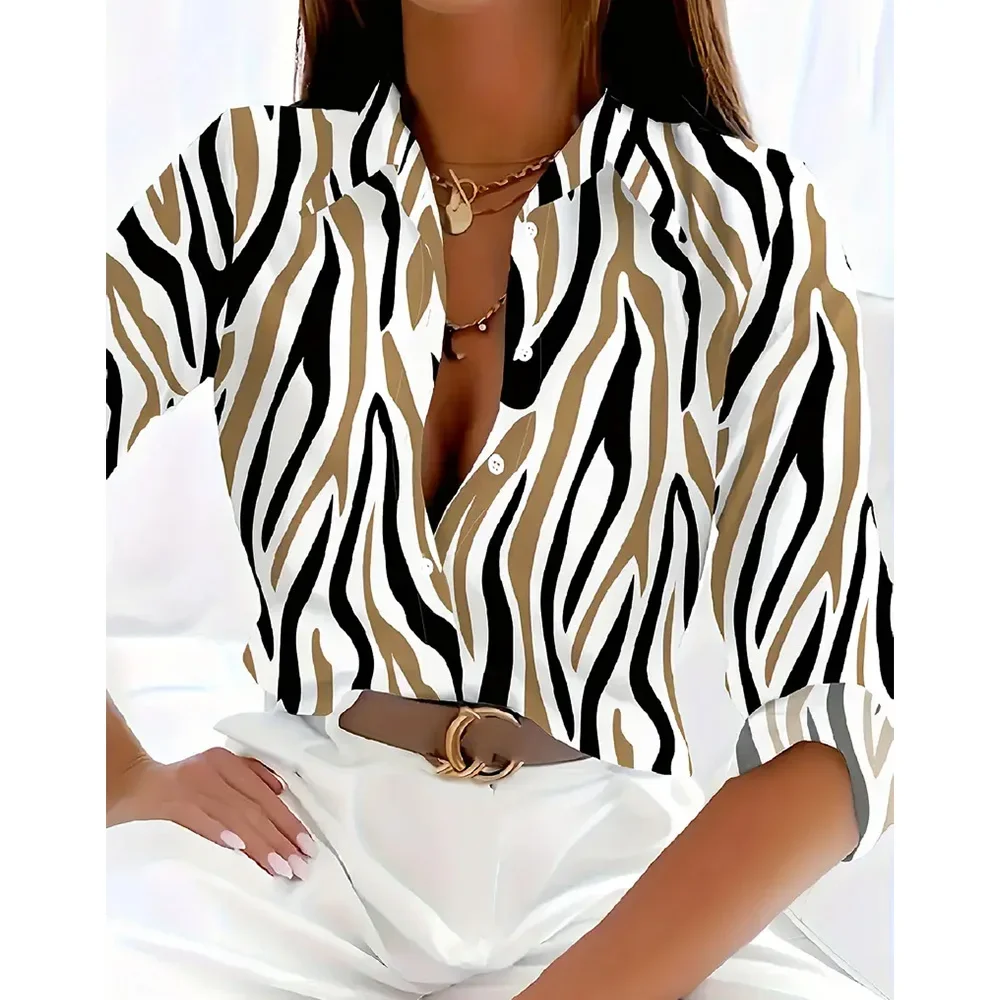 New Gradient Leopard Print 3D Print Women's Autumn Long Sleeve Shirt Blouse Street Trend Fashion Women Single Breasted Shirt Top