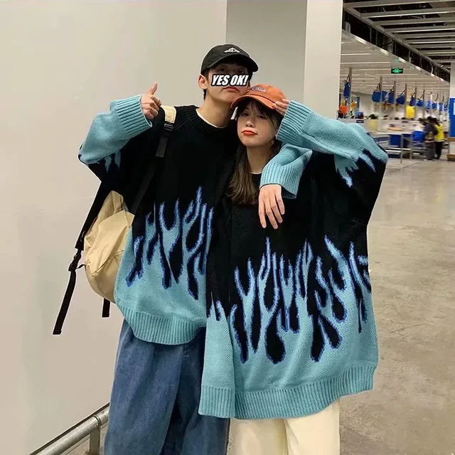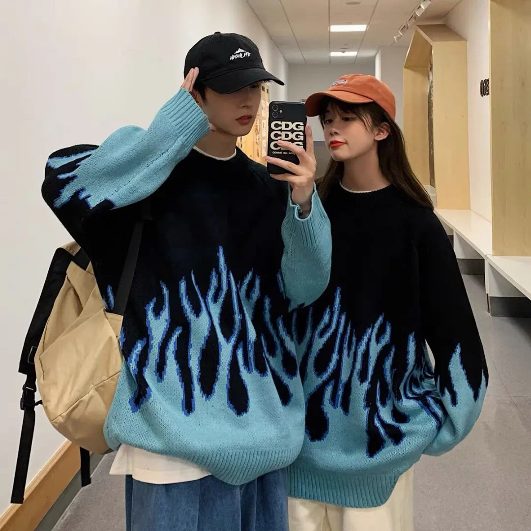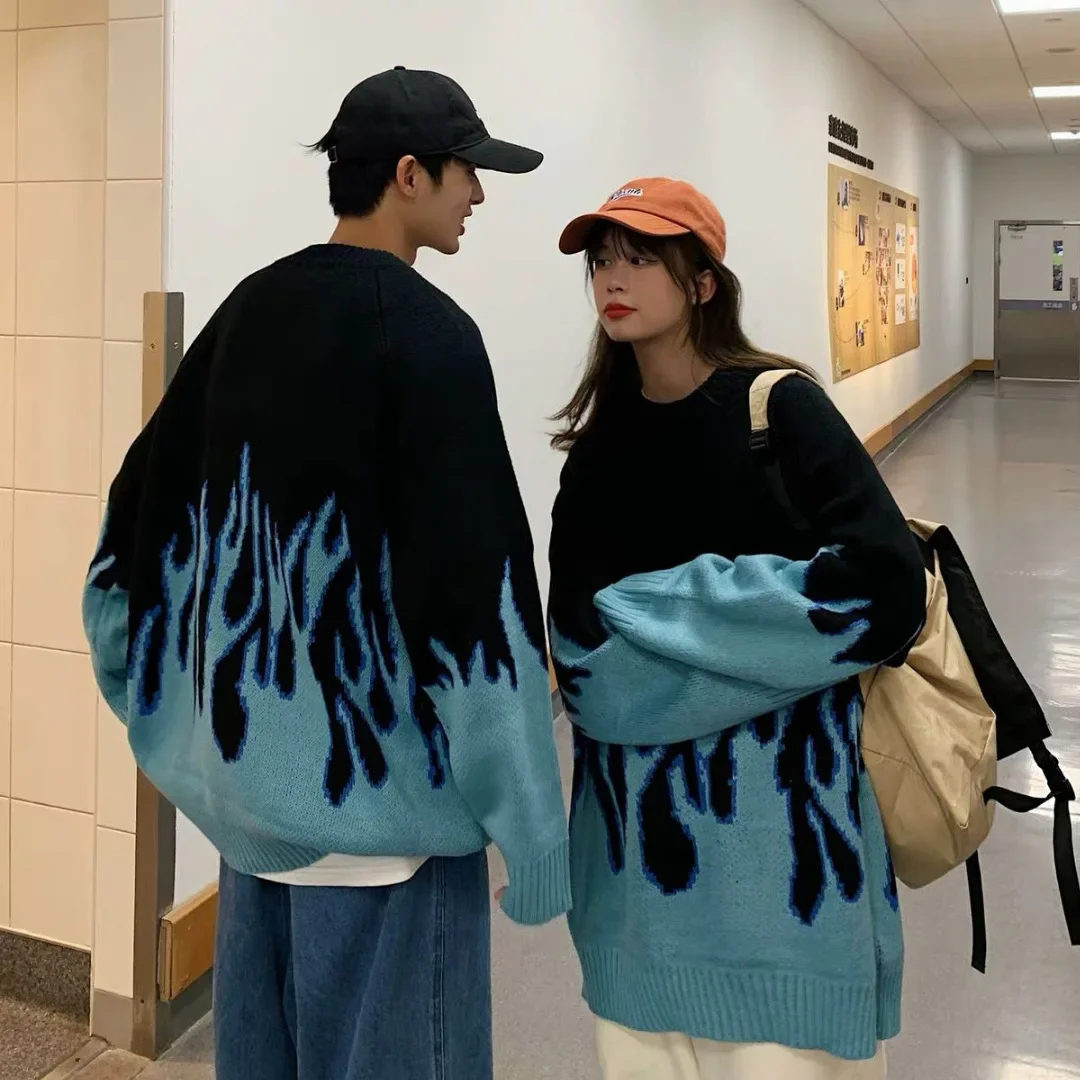 • Couple Coordination : With its trendy flame pattern, this sweater serves as a great coordinating piece for couples, adding a touch of hip-hop flair to your winter wardrobe.