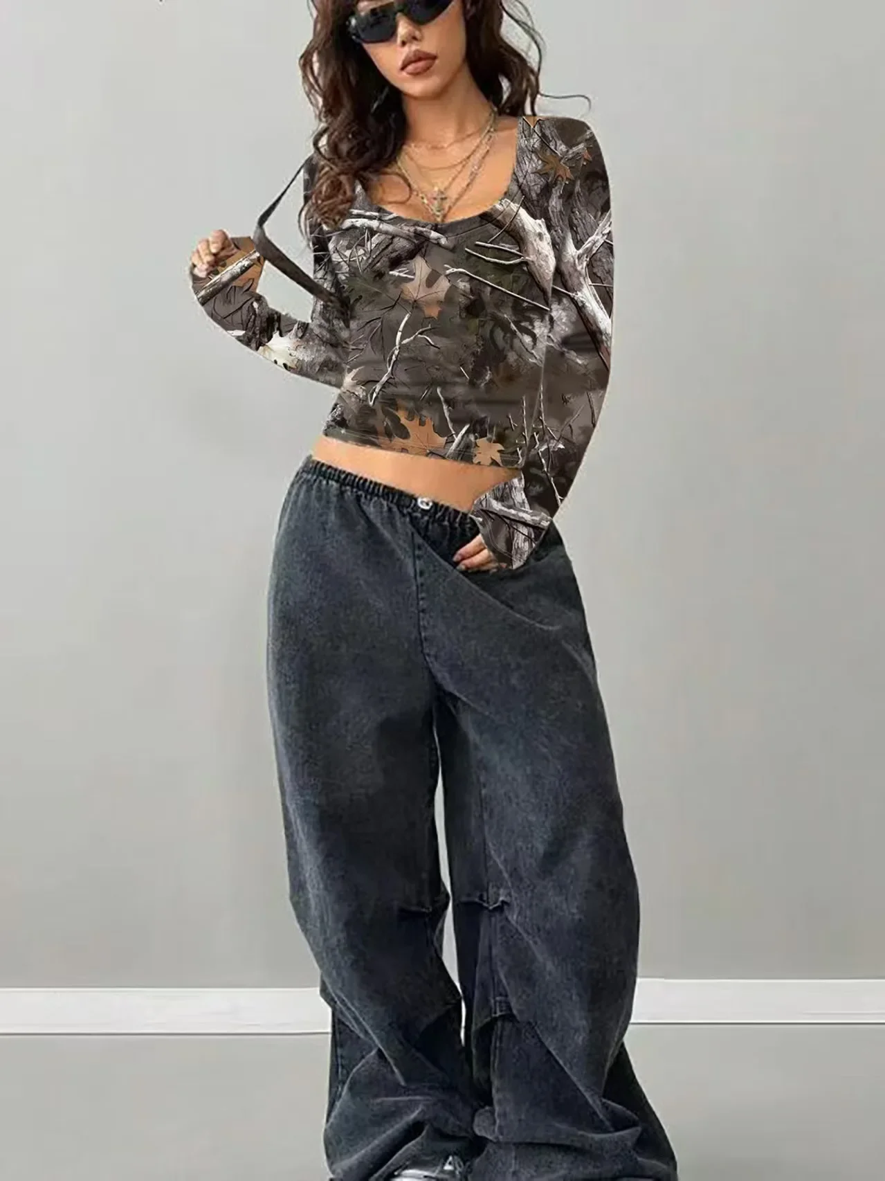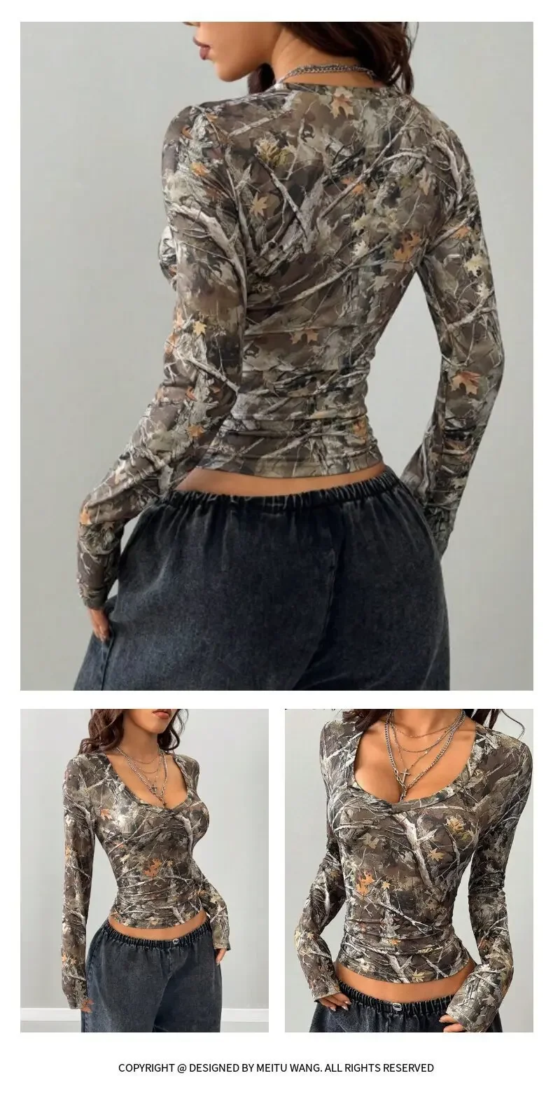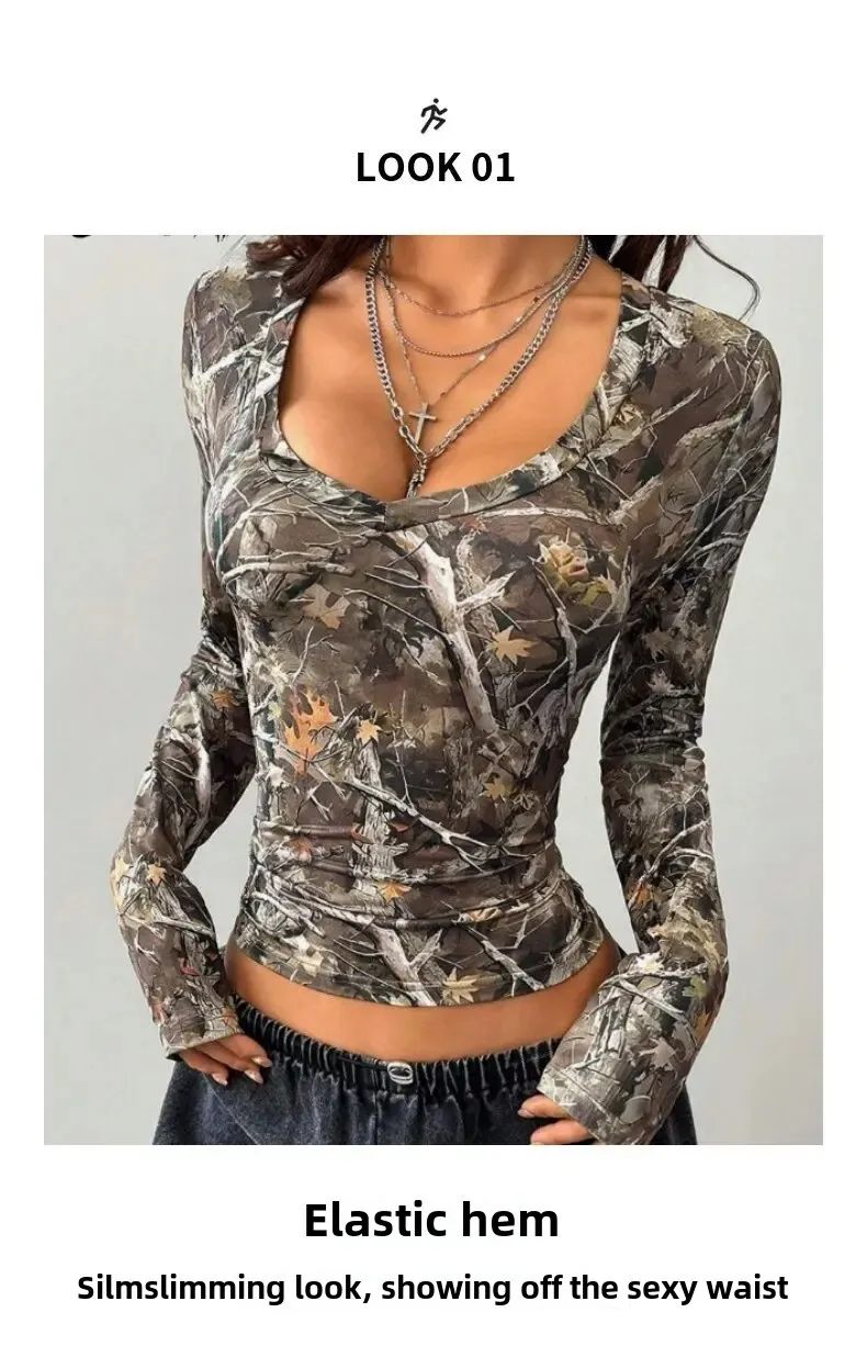 • Fashionable Design : This T-shirt features a trendy spice girl design with a retro camouflage pattern, making it a stylish choice for fashion-forward women.