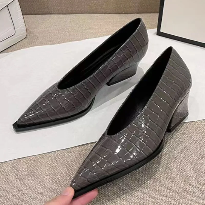 Fashionable Crocodile Leather Office Shoes 2024 Women's Simple Patent Leather Shallow High Heels Pointed Toe Women's High Heels