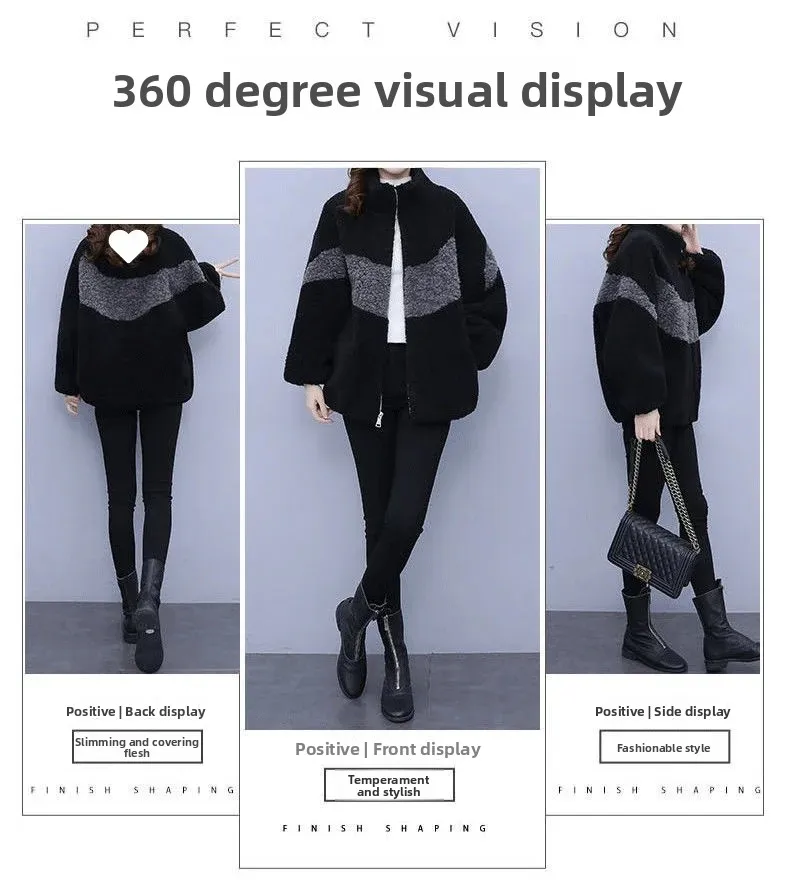 Fashionable Lamb Velvet Jacket Autumn Winter Thickened Loose Women's Coat Color Block Particle Velvet Large Size Women's Wear